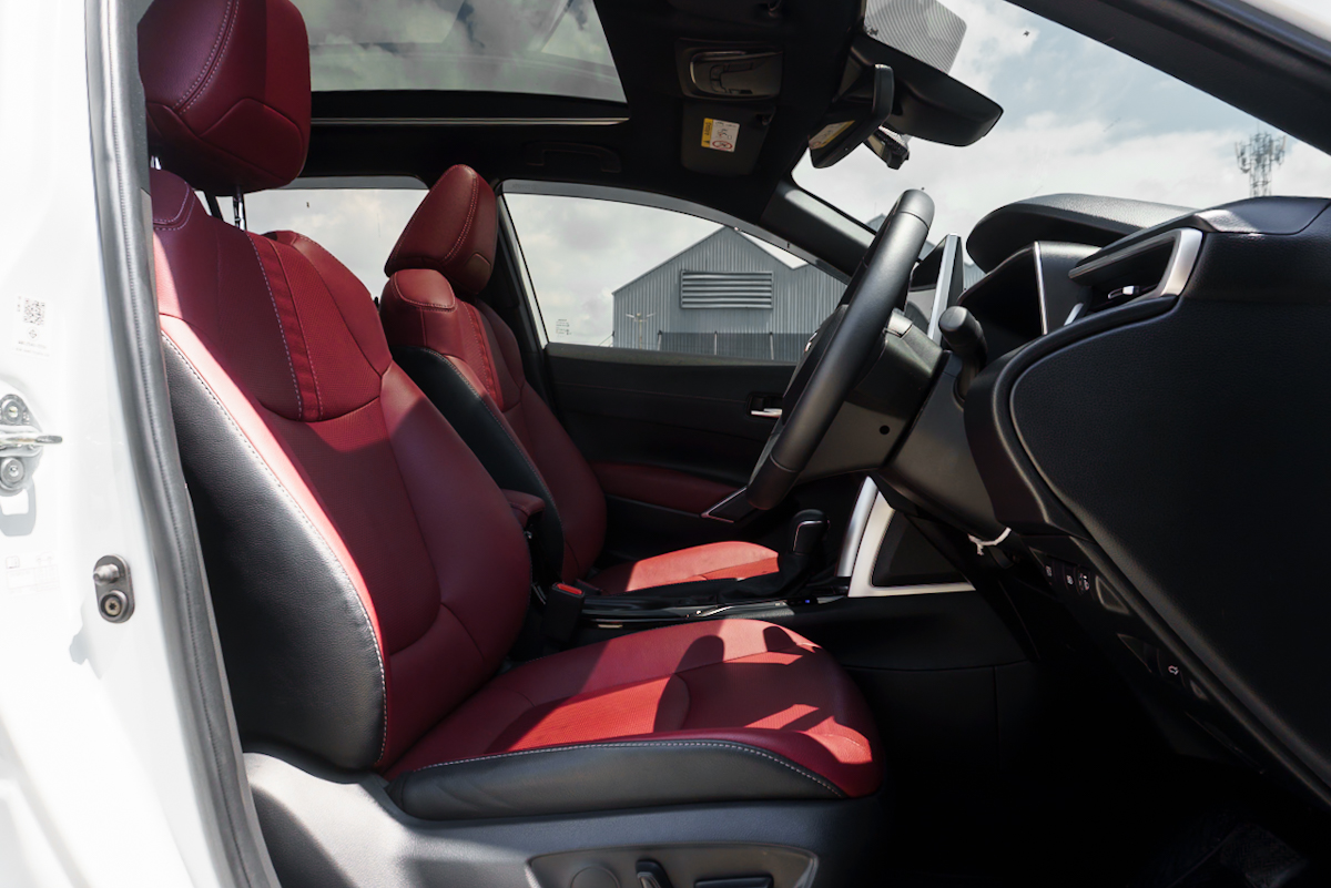Accessories : -พวงมาลัยพาวเวอร์ไฟฟ้า EPAS -ไฟหน้า Projector Lens LED แบบ Hybrid -ไฟ Daytime Running Light แบบ LED Light Guiding -ไฟเลี้ยวด้านหน้า LED -ไฟท้าย LED พร้อมไฟหรี่ Light Guiding -ไฟท้าย LED -กระจกมองข้างปรับและพับด้วยไฟฟ้าพร้อมไฟเลี้ยวในตัว -กระจกมองข้าง ปรับระดับอัตโนมัติ เมื่อเข้าเกียร์ถอยหลัง -ไฟเบรกดวงที่ 3 แบบ LED -ไฟตัดหมอกด้านหลัง -เสาอากาศแบบครีบฉลาม Shark Fin -เบาะนั่งหุ้มด้วยหนัง สีดำ -เบาะนั่งคนขับ ปรับด้วยไฟฟ้า 8 ทิศทาง -เบาะนั่งผู้โดยสารตอนหน้า ปรับด้วยมือ 4 ทิศทาง -ที่วางแขน เบาะนั่งคู่หน้า ปรับเลื่อนได้ -เบาะนั่งด้านหลัง แยกพับอิสระ 60 : 40 -เบาะนั่งด้านหลัง ปรับเอนได้ 1 จังหวะ -ที่วางแขน เบาะนั่งด้านหลัง พร้อมที่วางแก้วน้ำ -ช่องเก็บเอกสาร ด้านหลังเบาะนั่งผู้โดยสารตอนหน้า -ไฟส่องสว่างบริเวณประตูคู่หน้า และ ที่วางแก้วน้ำ -ฝาท้าย เปิด-ปิดด้วยระบบไฟฟ้า -ระบบเปิด-ปิด ฝาท้ายโดยไม่ต้องใช้มือ Kick Activated -ระบบปัดน้ำฝนแบบอัตโนมัติ Rain Sensor -หน้าจอแสดงข้อมูลการขับขี่แบบสี TFT ขนาด 7 นิ้ว -ไฟตัดหมอกคู่หน้า แบบ LED -ระบบแจ้งเตือนแรงดันลมยาง TPMS -ระบบช่วยเตือนมุมอับสายตาที่กระจกมองข้าง BSM -ระบบช่วยเตือนเมื่อมีรถตัดผ่านขณะถอยหลัง RCTA -พวงมาลัยหุ้มด้วยหนัง -หัวเกียร์หุ้มด้วยหนัง -พวงมาลัยปรับได้ 4 ทิศทาง (ขึ้น-ลง-เข้า-ออก) -เกียร์อัตโนมัติ E-CVT -ระบบ EV Mode / Sport Mode / ECO Mode -ที่บังแดดคู่หน้า พร้อมกระจกแต่งหน้า และ ไฟส่องสว่าง -ไฟอ่านแผนที่ด้านหน้า -ไฟส่องสว่างภายในห้องโดยสาร -แผงกั้นสัมภาระด้านท้าย -ระบบกุญแจ Smart Keyless Entry -ปุ่มสตาร์ทเครื่องยนต์ Push Start Button -ราวมือจับในห้องโดยสาร 4 ตำแหน่ง พร้อมราวแขวนเสื้อด้านหลัง -กระจกบังลมหน้า แบบ Acoustic Glass -ระบบปรับอากาศแบบอัตโนมัติ แยกอิสระซ้าย-ขวา -ช่องแอร์สำหรับผู้โดยสารตอนหลัง -ช่องชาร์จไฟ USB สำหรับผู้โดยสารตอนหลัง 2 ตำแหน่ง -มาตรวัดเรืองแสง Optitron เรืองแสง -หน้าจอแสดงข้อมูลการขับขี่แบบสี TFT ขนาด 4.2 นิ้ว -หน้าจอเครื่องเสียงระบบสัมผัส Touchscreen ขนาด 9 นิ้ว -สวิตซ์ควบคุมเครื่องเสียงบนพวงมาลัย -รองรับระบบ Apple CarPlay / Android Auto -ช่องเชื่อมต่อ USB -ระบบเชื่อมต่อไร้สาย Bluetooth -ลำโพง 6 ตำแหน่ง -ระบบโทรออกด้วยเสียง -ระบบ T-Connect Telematics -ระบบเบรกป้องกันล้อล็อค ABS -ระบบกระจายแรงเบรก EBD -ระบบเสริมแรงเบรก BA -ระบบควบคุมการทรงตัว VSC -ระบบป้องกันการลื่นไถล TRC -ระบบช่วยออกตัวบนทางลาดชัน HAC -ระบบป้องกันการออกตัวแบบฉุกเฉิน Drive Start Control -ระบบความปลอดภัยก่อนการชน และ เบรกอัตโนมัติ Pre-Collision System -ระบบควบคุมความเร็วอัตโนมัติ แบบแปรผัน Dynamic Radar Cruise Control -ระบบปรับไฟสูงอัตโนมัติ Automatic High Beam Control -ระบบเตือนเมื่อออกนอกเลน Lane Departure Warning -ระบบประคองรถให้อยู่ในช่องจราจร Lane Tracing Assist -ไฟฉุกเฉินอัตโนมัติ เมื่อเบรกก