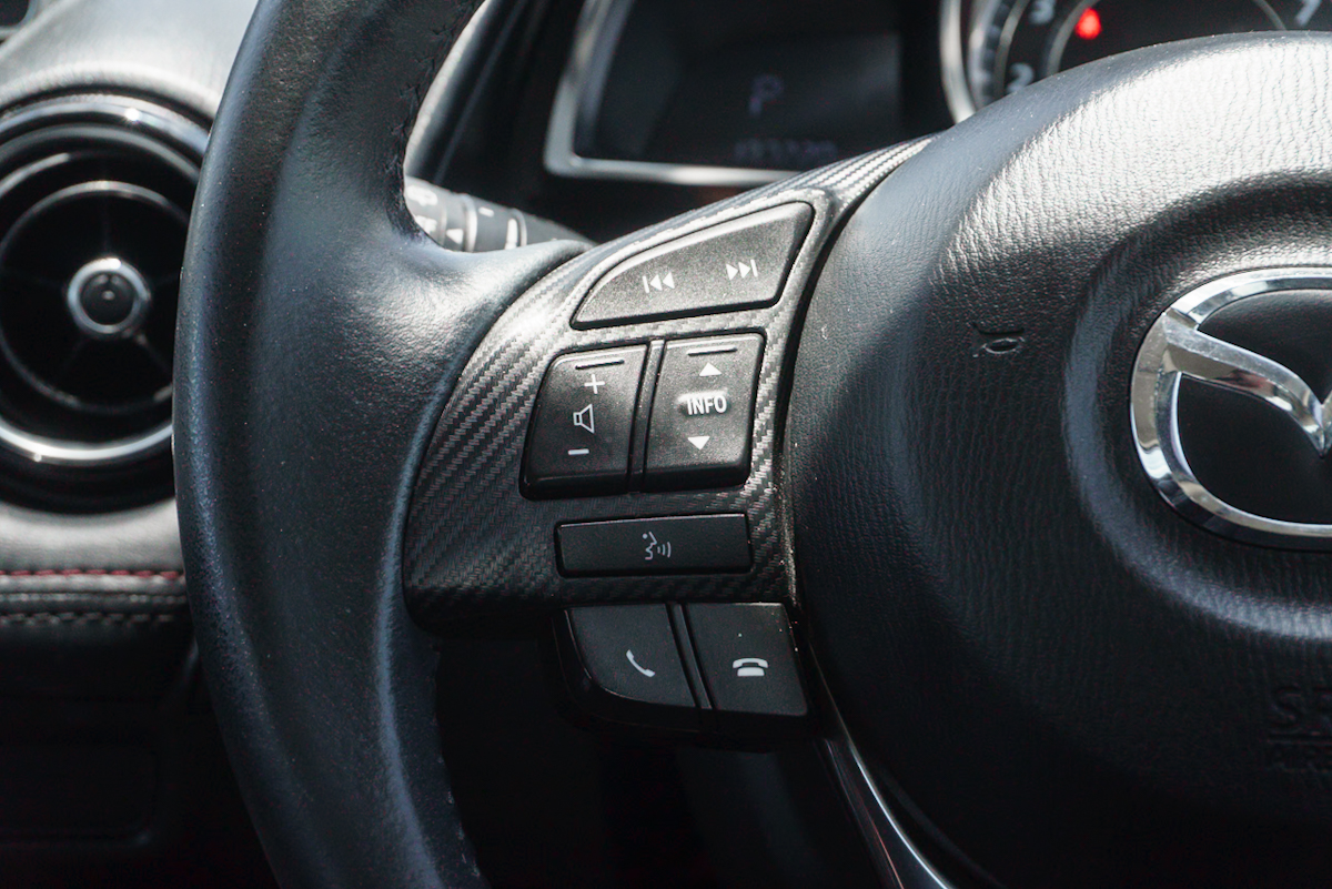 Accessories : - เครื่องยนต์เบนซิน 2.0 Skyactiv-G Direct Injection ขนาด 1,998 ซีซี. - กำลังสูงสุด 156 แรงม้า ที่ 6,000 รอบ/นาที - แรงบิดสูงสุด 204 นิวตันเมตร ที่ 2,800 รอบ/นาที - รองรับน้ำมันได้สูงสุด E85 - เกียร์อัตโนมัติ 6 จังหวะ พร้อม Manual Mode (Active Matic) - พวงมาลัยไฟฟ้า EPAS - เบรกคู่หน้า ดิสก์เบรก / เบรกคู่หลัง ดิสก์เบรก - ล้ออัลลอยขนาด 16 นิ้ว - ยาง Bridgestone Turanza T001 ขนาด 215/60 R16 - ไฟตัดหมอกคู่หน้า แบบ LED - ไฟ Daytime Running Lights แบบ LED - ไฟท้ายแบบ LED - กุญแจอัจฉริยะ Smart Keyless Entry - ระบบปรับอากาศแบบอัตโนมัติ - ที่ปัดน้ำฝนกระจกบังลมหน้า/หลัง แบบหน่วงเวลา - สปอยเลอร์หลัง - กระจกมองข้างปรับและพับไฟฟ้า พร้อมไฟเลี้ยวในตัว - กระจกกรองแสงรอบคันพร้อมลดเสียงรบกวนจากภายนอก (Green Tint Mirror) - เสาอากาศแบบครีบฉลาม Shark Fin - ท่อไอเสียคู่แบบสปอร์ต พร้อมปลายท่อโครเมียม - ปุ่มสตาร์ทเครื่องยนต์ Push Start Button - สวิตซ์ Drive Selection (ปุ่ม Sport ที่คันเกียร์) - มือจับเปิดประตูและกรอบที่เปิดประตูด้านในสีเงิน - มาตรวัดรอบเครื่องยนต์แบบ Digital - จอ MID แสดงข้อมูลการขับขี่ - พวงมาลัยปรับระดับได้ 4 ทิศทาง (ขึ้น-ลง-เข้า-ออก) - ระบบไล่ฝ้ากระจกบังลมหลัง - เบาะนั่งหุ้มด้วยหนังสีดำสลับด้วยผ้าสีเทาเดินด้ายสีแดง - พวงมาลัยหุ้มด้วยหนังตกแต่งด้วยลายคาร์บอนและวัสดุสีเงินวาว - หัวเกียร์และเบรกมือหุ้มด้วยหนัง - ระบบเครื่องเสียงหน้าจอสี Center Display ขนาด 7 นิ้วพร้อมปุ่ม Center Commander - ช่องเชื่อมต่อ AUX / USB 2 ช่อง - ช่องรองรับ SD Card (สำหรับ Navigation System) - ลำโพง 6 ตำแหน่ง - พวงมาลัยยูรีเทน - หัวเกียร์และเบรกมือยูรีเทน - เบาะแถวหลังแยกพับแบบ 60 : 40 - กระจกหน้าต่างไฟฟ้า พร้อมระบบป้องกันการหนีบที่ด้านคนขับ - แผ่นปิดห้องสัมภาระด้านท้าย - เครื่องเสียงวิทยุ AM/FM พร้อมเครื่องเล่น CD/MP3 - ปุ่มควบคุมเครื่องเสียงบนพวงมาลัย - ระบบเชื่อมต่อไร้สาย Bluetooth - ระบบสั่งงานด้วยเสียง Voice Recognition - ช่องเชื่อมต่อ AUX / USB 1 ช่อง - ช่องชาร์จไฟ 12V - ลำโพง 4 ตำแหน่ง - ไฟเบรกดวงที่ 3 / จุดยึดเบาะนั่งเด็ก ISOFIX - ระบบเบรกป้องกันล้อล็อก ABS - ระบบกระจายแรงเบรก EBD - ถุงลมนิรภัยคู่หน้า 2 ตำแหน่ง - ระบบควบคุมเสถียรภาพการทรงตัว DSC - ระบบป้องกันการลื่นไถลและล้อหมุนฟรี TCS - ระบบช่วยออกตัวบนทางลาดชัน HLA - ระบบควบคุมเกียร์ AAS ( Active Adaptive Shift ) - ระบบไฟฉุกเฉินอัตโนมัติเมื่อเบรกกะทันหัน ESS - ระบบล็อคประตูอัตโนมัติ - ระบบช่วยประหยัดน้ำมัน i-stop - ระบบปรับไฟหน้าสูงอัตโนมัติ HBC (High Beam Control) - ระบบเตือนเมื่อมีรถอยู่ในจุดอับสายตา ABSM (Advanced Blind Spot Monitoring) - ระบบเตือนเมื่อรถเบี่ยงออกนอกเลน LDWS (Lane Departure Warning System) - ระบบเตือนเมื่อมีรถอยู่ในจุดอับสายตาขณะถอยหลัง RCTA (Rear Cross Traffic Alert) - ระบบช่วยหยุดรถอัตโนมัติ SCBS (Smart City Brake Support) - สัญญาณกันขโมย พร้อมกุญแจนิรภัย Immobilizer - มาตรวัดรอบเครื่องยนต์แบบ Analog - หน้าจอ Acti