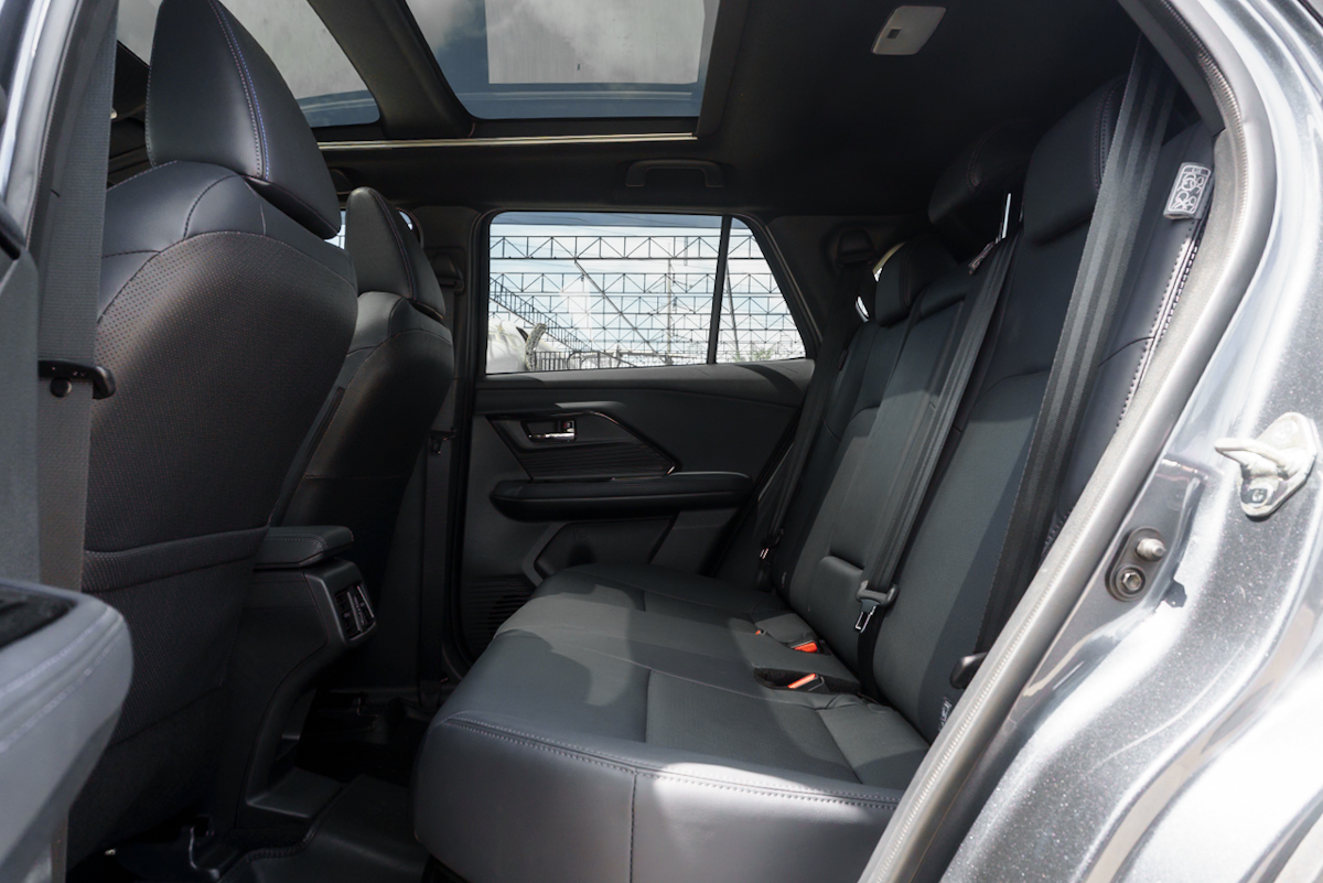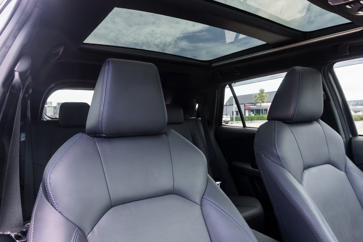 Accessories : -ไฟหน้า Full LED -ไฟส่องสว่างเวลากลางวัน (DRL) แบบ LED -ไฟตัดหมอกด้านหน้า LED -ไฟท้าย Full LED -ระบบควบคุมการเปิด-ปิดไฟหน้าอัตโนมัติ พร้อมระบบ Follow Me Home -สปอยเลอร์ด้านหลัง -เสาอากาศแบบครีบฉลาม -กระจกบังลมด้านหน้าแบบลดเสียงรบกวน Acoustic Glass -กระจกมองข้างสีเดียวกับตัวรถ พร้อมไฟเลี้ยว LED ปรับไฟฟ้า และพับเก็บไฟฟ้าอัตโนมัติ -ที่ปัดน้ำฝนด้านหน้าแบบหน่วงเวลาและปรับตั้งเวลาได้ -ที่ปัดน้ำฝนด้านหลัง -มือเปิดประตูด้านนอกสีเดียวกับตัวรถ -วัสดุเบาะนั่งเป็นหนังสังเคราะห์พร้อมเทคโนโลยี QUOLE MODURE ช่วยลดการสะสมความร้อนบนผิวสัมผัส -เบาะนั่งคนขับปรับไฟฟ้า 8 ทิศทาง -กระเป๋าหลังเบาะนั่งฝั่งผู้โดยสารด้านหน้า -พวงมาลัยปรับได้ 4 ทิศทาง สูง-ต่ำ ใกล้-ไกล -พวงมาลัยหุ้มหนัง -กระจกหน้าต่างแบบไฟฟ้า พร้อมเปิด-ปิดอัตโนมัติ และระบบป้องกันการหนีบด้านคนขับ -กระจกแต่งหน้าบริเวณแผงบังแดดคู่หน้า พร้อมไฟส่องสว่าง LED -ไฟสร้างบรรยากาศภายในห้องโดยสารปรับได้ 14 เฉดสี ที่คอนโซลกลางและแผงประตูหน้า -แผงปิดห้องสัมภาระท้ายรถ -สคัฟเพลทบริเวณประตูสีเงินเมทัลลิก -ไฟอ่านแผนที่ด้านหน้า / ไฟส่องสว่างภายในห้องโดยสาร / ไฟส่องสว่างห้องเก็บสัมภาระ LED -ราวมือจับ 4 ตำแหน่ง -มาตรวัดแบบ Digital / จอแสดงผลข้อมูลการขับขี่ MID แบบจอสี TFT ขนาด 7 นิ้ว -ระบบ Smart Entry และ Push Start -ระบบเบรกมือไฟฟ้า EPB -ระบบหน่วงเบรกอัตโนมัติ -สวิตช์เลือกโหมดการขับขี่แบบ POWER / NORMAL / ECO บนพวงมาลัย -เครื่องเสียงหน้าจอสัมผัสขนาด 10.1 นิ้ว -สวิตช์ควบคุมเครื่องเสียง โทรศัพท์ และจอแสดงผลข้อมูลการขับขี่บนพวงมาลัย พร้อมปุ่มควบคุม ACC และ LKC -ระบบเชื่อมต่อ Apple CarPlay และ Android Auto รองรับการเชื่อมต่อแบบไร้สาย -ระบบเชื่อมต่อด้วย Bluetooth รองรับโทรศัพท์และการเล่นเพลง -ช่องต่อ USB ด้านหน้า 2 ตำแหน่ง บริเวณคอนโซลหน้า Type A และ C -ช่องต่อ USB ด้านหลัง 2 ตำแหน่ง บริเวณคอนโซลกลาง Type C -ช่องต่ออุปกรณ์ไฟฟ้า 12V 1 ตำแหน่ง ภายในกล่องเก็บของคอนโซลกลาง -ระบบปรับอากาศอัตโนมัติ พร้อมระบบกรองฝุ่น PM2.5 และช่องปรับอากาศตอนหลัง -กระจกมองหลังแบบปรับลดแสงสะท้อน -ประตูท้ายเปิด-ปิดด้วยระบบไฟฟ้า -กล้องมองภาพขณะถอยหลัง -กล้องบันทึกภาพด้านหน้า -สัญญาณเตือนกะระยะด้านหลัง 2 ตำแหน่ง ด้านหลัง 2 ตำแหน่ง -ไฟเบรกดวงที่สาม LED -สัญญาณไฟฉุกเฉินขณะเบรกกะทันหัน -ระบบเบรกป้องกันล้อล็อก ABS พร้อมระบบเสริมแรงเบรก BA และระบบกระจายแรงเบรก EBD -ระบบควบคุมการทรงตัว VSC -ระบบป้องกันล้อหมุนฟรี TRC -ระบบช่วยออกตัวบนทางลาดชัน HAC -เข็มขัดนิรภัยคู่หน้าแบบดึงรั้งกลับและผ่อนแรงอัตโนมัติ ELR 3 จุด 2 ตำแหน่ง พร้อมระบบเตือนคาดเข็มขัดนิรภัย -ถุงลมเสริมความปลอดภัย SRS คู่