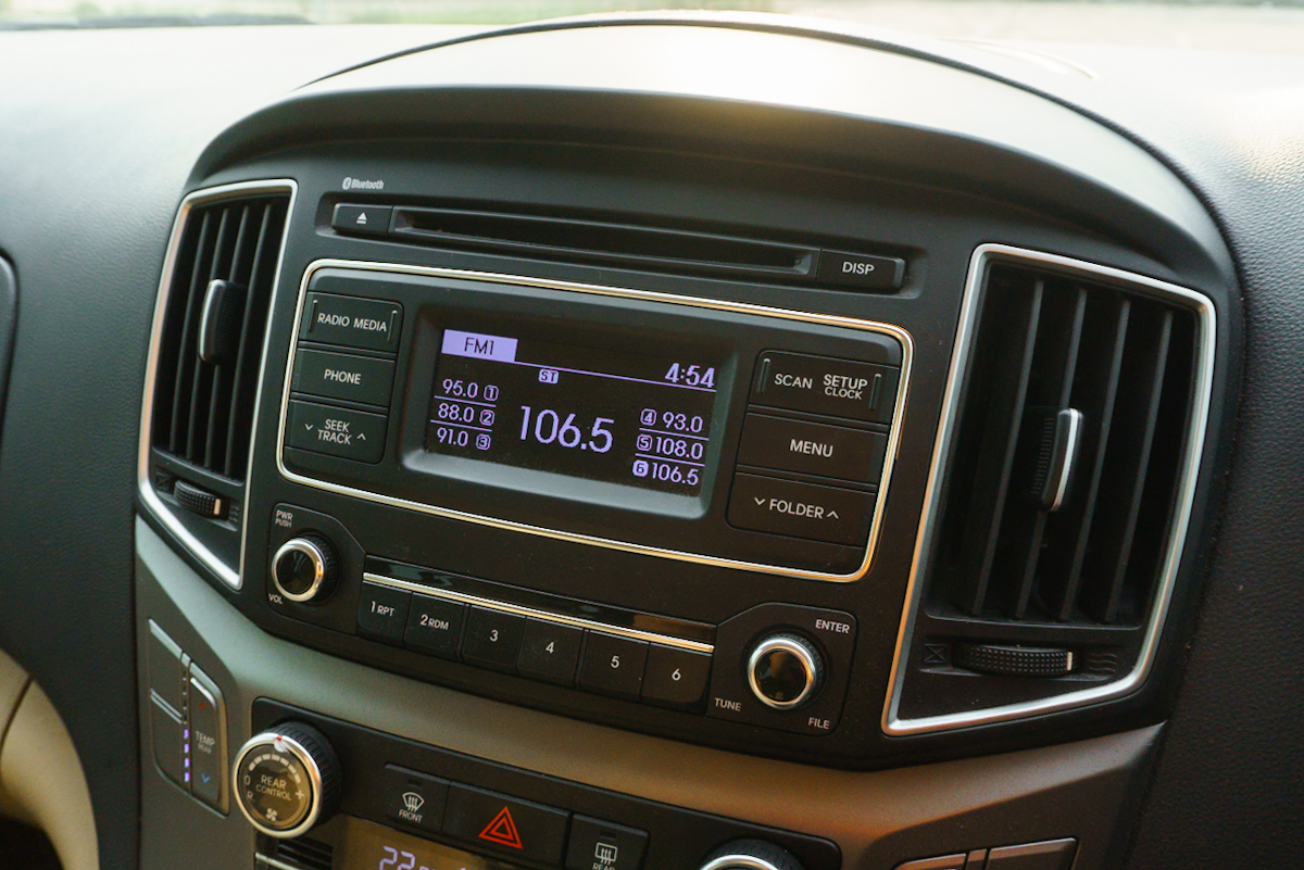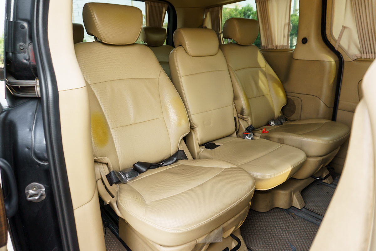 Accessories : -ไฟหน้า Projector Lens แบบฮาโลเจน -ระบบไฟหน้า เปิด-ปิด แบบอัตโนมัติ -ไฟ Daytime Running Light แบบ LED -ไฟท้ายแบบ LED -ไฟเบรกดวงที่ 3 แบบ LED -กระจังหน้าโครเมียม -กระจกมองข้างสีเดียวกับตัวรถ -คิ้วกรอบป้ายทะเบียนหลังโครเมียม -กระจกมองข้าง ปรับและพับ ด้วยไฟฟ้า -กระจกมองข้าง พร้อมไฟเลี้ยว LED -ที่ปัดน้ำฝนด้านหน้าแบบหน่วงเวลา -ระบบไล่ฝ้ากระจกบังลมหลัง -ที่ปัดน้ำฝนด้านหลัง -เสาอากาศแบบสั้น -สปอยเลอร์หลัง -กาบข้างสีเดียวกับตัวรถ -ประตูด้านหน้าแบบ Tilting Door -ประตูสไลด์ด้านซ้าย – ด้านขวา -พวงมาลัย และ หัวเกียร์ยูรีเทน -พวงมาลัยปรับได้ 4 ทิศทาง (ขึ้น-ลง-เข้า-ออก) -สวิตซ์ควบคุมเครื่องเสียงบนพวงมาลัย -มาตรวัดแบบ SuperVision Meters -หน้าจอแสดงข้อมูลการขับขี่ MID -ภายในตกแต่งด้วยวัสดุลายไม้ -ระบบปรับอากาศแบบอัตโนมัติ -ช่องแอร์สำหรับผู้โดยสารตอนหลัง บนเพดาน -ปุ่มควบคุมระบบปรับอากาศแยกส่วน สำหรับผู้โดยสารตอนหลัง -กระจกแบบ Flush Glass ที่ประตูสไลด์ -กระจกหน้าต่าง พร้อมระบบป้องกันการหนีบฝั่งคนขับ Protection Jam -กุญแจรีโมทแบบพับเก็บได้ -ช่องเสียบกุญแจเรืองแสง -กล่องเก็บแว่นตา -แผงบังแดดพร้อมกระจกแต่งหน้า และ ไฟส่องสว่าง -เบาะนั่งหุ้มด้วยผ้าสีเบจ 4 แถว 11 ที่นั่ง -เบาะนั่งแบบ 11 ที่นั่ง (2 : 3 : 3 : 3) -เบาะนั่งแถวที่ 2 สามารถปรับหมุนได้ 180 องศา -เครื่องเสียงวิทยุ แบบ 2DIN AM/FM CD MP3 1 แผ่น -ระบบเชื่อมต่อไร้สาย Bluetooth -ช่องเชื่อมต่อ AUX / USB -ช่องชาร์จไฟ 12V 2 ตำแหน่ง -ช่องชาร์จไฟ USB 2 ตำแหน่ง สำหรับผู้โดยสารตอนหลัง -ลำโพง 6 ตำแหน่ง -ระบบเบรก ABS / EBD / BA -ระบบเบรกคู่หน้า ดิสก์เบรก / คู่หลัง ดิสก์เบรก -ระบบล็อคประตูสัมพันธ์กับความเร็ว Speed Auto Lock -ถุงลมนิรภัยคู่หน้า 2 ตำแหน่ง -ระบบสัญญาณกันขโมย -สัญญาณเตือนกะระยะถอยจอด