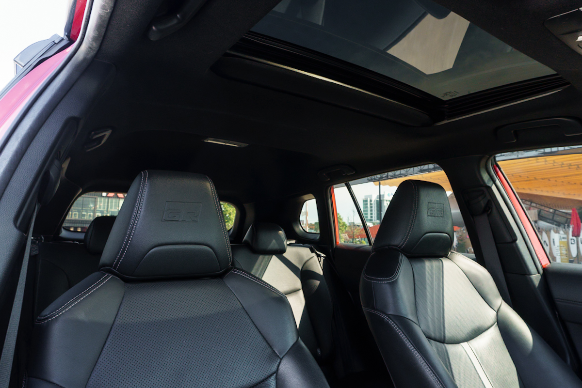 Accessories : -อุปกรณ์ชุดแต่ง (กระจังหน้าสีดำเงา,กันชนหน้า-หลัง เฉพาะรุ่น GR Sport,สัญลักษณ์ GR Sport) -สเกิร์ต (หน้า / ข้าง / หลังสีเงินเมทัลลิก เฉพาะรุ่น GR Sport) -หลังคาแก้ว (หลังคา Panoramic Roof แบบ Frameless พร้อมม่านบังแดดปรับไฟฟ้า) -กระจกมองข้างพร้อมไฟเลี้ยว (แบบ Sequential ด้านหน้า) -ไฟตัดหมอก (หน้า LED) -ระบบควบคุมระยะการจอด (เซ็นเซอร์ด้านหน้า 4 ตำแหน่ง และด้านหลัง 4 ตำแหน่ง) -ไฟท้าย LED (Light Guiding ดีไซน์เฉพาะรุ่น GR Sport) -ไฟ Daytime Running Lights (LED Crystalized Light) -ราวหลังคา -ยางอะไหล่สำรอง (เป็นชุดซ่อมยางฉุกเฉิน) -ไฟหน้า LED (โปรเจคเตอร์) -ขนาดยางหน้า-หลัง (225/50 R18) -ล้ออัลลอย (ปัดเงาสีทูโทนขนาด 18 นิ้ว เฉพาะรุ่น GR Sport) -ตกแต่งภายใน (คอนโซลหน้าบุนุ่ม ตกแต่งด้วยตะเข็บ และสีเงินเมทัลลิก) -พวงมาลัยหุ้มหนัง (พร้อมตกแต่งด้วยสีเงินเมทัลลิก) -พวงมาลัยปรับสูง-ต่ำได้ (และใกล้ - ไกล) -ภายในโทนสีดำ -กระจกมองหลังตัดแสง (อัตโนมัติ) -ระบบปรับรูปแบบการขับขี่ (EV / Power / Normal / ECO) -พรมปูพื้น (พร้อมสัญลักษณ์ GR) -ระบบควบคุมการทรงตัวอัตโนมัติ (VSC) -ดิสก์เบรก 4 ล้อ -กุญแจนิรภัย (Immobilizer) -ไฟเบรกดวงที่ 3 (LED) -ระบบป้องกันก่อนเกิดเหตุ (ระบบความปลอดภัยก่อนการชน PCS) -ระบบกระจายแรงเบรก EBD -อุปกรณ์เสริมความปลอดภัยอื่นๆ (ระบบเตือนเมื่อออกนอกเลนพร้อมพวงมาลัยหน่วง-กลับอัตโนมัติ LDA,ระบบช่วยควบคุมรถให้อยู่กลางเลน LTA,ระบบช่วยเตือนขณะจอดรถ -พร้อมช่วยเบรกอัตโนมัติ PKSB) -เข็มขัดนิรภัย (คู่หน้าแบบดึงรั้งกลับ และผ่อนแรงอัตโนมัติ ELR 3 จุด 2 ตำแหน่ง พร้อม-ระบบเตือนคาดเข็มขัดนิรภัย,คู่หลังELR 3 จุด 3 ตำแหน่ง) -กระจกนิรภัย (แบบลดเสียงรบกวน Acoustic Glass) -อื่นๆ (ระบบช่วยเตือนมุมอับสายตาที่กระจกมองข้าง BSM และช่วยเตือนขณะถอยรถ RCTA,ระบบแจ้งเตือนลมยาง TPMS,ระบบช่วยเตือนขณะจอดรถ พร้อมช่วยเบรกอัตโนมัติ PKSB (Parking Support Brake)) -ระบบป้องกันล้อหมุนฟรี TRC -ระบบสัญญาณไฟฉุกเฉินอัตโนมัติเมื่อเบรกกะทันหัน -กล้อง (มองรอบคัน PVM (Panoramic View Monitor),กล้องวิดีโอบันทึกภาพติดรถยนต์ (DVR) ด้นหน้า-หลัง) -เทคโนโลยีช่วยการออกตัวบนทางลาดชัน HSA -เบรกมือไฟฟ้า (พร้อมระบบหน่วงเบรกอัตโนมัติ (Auto Brake Hold)) -จุดยึดเบาะนั่งสำหรับเด็ก (ISOFIX)
