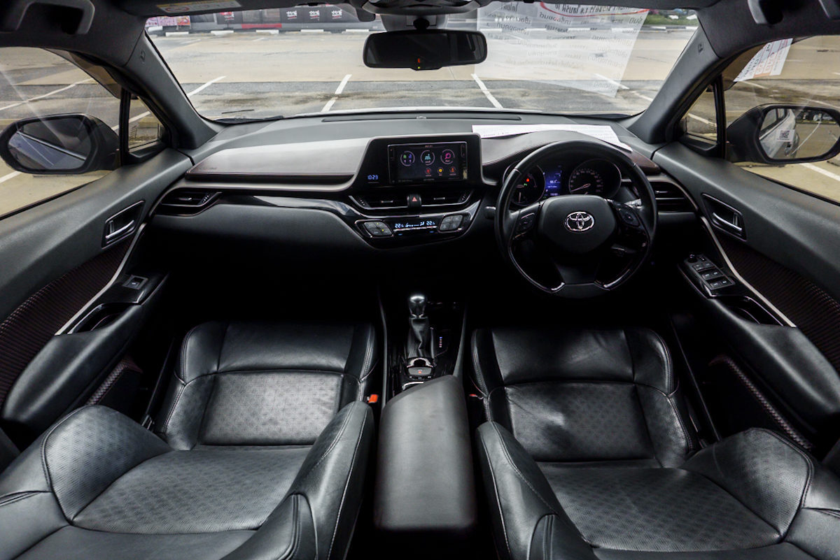 Accessories : -เครื่องยนต์ 1.8 Hybrid + มอเตอร์ไฟฟ้า 122 แรงม้า จับคู่กับเกียร์อัตโนมัติ E-CVT -แบตเตอรี่แบบ Nickel metal Hydride (Ni-MH) 28 Modules 6.5 Ah -ไฟหน้า Projector Lens แบบ Full LED -ไฟ Daytime Running Light LED แบบ Light Guiding -ไฟเลี้ยวไฟหน้าแบบ LED จังหวะ Sequential -ระบบปรับระดับไฟหน้า สูง-ต่ำ แบบอัตโนมัติ -ไฟท้ายแบบ Full LED โคมรมดำ -ไฟส่องสว่าง Ambient Light บริเวณประตูหน้า และ ที่วางแก้วน้ำ -ระบบ T-Connect TELEMATICS -ไฟส่องสว่างที่กระจกมองข้างแบบ LED Welcome Lamp -ระบบปัดน้ำฝนแบบอัตโนมัติ Rain Sensor -แผงบังแดดคู่หน้า พร้อมไฟส่องสว่าง -กระจกมองหลัง แบบปรับลดแสงอัตโนมัติ -ระบบฟอกอากาศภายในห้องโดยสาร Nanoe -ระบบนำทาง Navigation System -ระบบปรับไฟสูงอัตโนมัติ Automatic High Beam Control -ระบบช่วยเตือนมุมอับสายตาที่กระจกมองข้าง Blind Spot Monitoring -ระบบช่วยเตือนเมื่อมีรถตัดผ่านขณะถอยหลัง Rear Cross Traffic Alert -ระบบเตือนเมื่อผู้ขับขี่มีอาการเหนื่อยล้า Driver Assist Alert -ระบบความปลอดภัยก่อนการชน และ เบรกอัตโนมัติ Pre-Collision System -ระบบเตือนเมื่อออกนอกเลน พร้อมหน่วงพวงมาลัยอัตโนมัติ Lane Departure Warning With Steering Assist -ระบบควบคุมความเร็วอัตโนมัติ แบบแปรผัน Dynamic Radar Cruise Control --พวงมาลัยพาวเวอร์ไฟฟ้า EPS -ล้ออัลลอย ขนาด 17 นิ้ว พร้อมยาง 215/60 R17 -บังโคลนซุ้มล้อ ด้านหน้า -ไฟหน้า Projector Lens แบบฮาโลเจน -ไฟ Daytime Running Light แบบ LED -สวิตซ์ปรับระดับไฟหน้า สูง-ต่ำ -ระบบเปิด-ปิดไฟหน้า แบบอัตโนมัติ -ระบบไฟหน้า Follow me home -ไฟท้ายแบบ LED -ไฟตัดหมอกหลัง -กระจกมองข้างพร้อมไฟเลี้ยว LED ในตัว -กระจกมองข้าง ปรับและพับด้วยไฟฟ้า -กระจกมองข้าง พับเก็บแบบอัตโนมัติ -กระจกบังลมหน้าแบบกันเสียงรบกวน Acoustic Glass -สปอยเลอร์หลัง พร้อมไฟเบรกดวงที่ 3 แบบ LED -เสาอากาศแบบครีบฉลาม Shark Fin -มือเปิดประตูด้านนอก สีเดียวกับตัวรถ -คิ้วขอบกระจกหน้าต่างสีดำ -คิ้วตกแต่งเสากลางภายนอกสีดำ -แผ่นกันความร้อนใต้ฝากระโปรงหน้า -ภายในห้องโดยสาร โทนสีดำ -เบาะนั่งหุ้มด้วยผ้า -เบาะนั่งคู่หน้าแบบสปอร์ต -เบาะนั่งคนขับปรับด้วยมือ 6 ทิศทาง -เบาะนั่งผู้โดยสารตอนหน้า ปรับด้วยมือ 4 ทิศทาง -เบาะนั่งด้านหลังแยกพับอิสระ 60 : 40 -แผงกั้นสัมภาระด้ายท้าย -มือเปิดประตูด้านในโครเมียม -แผงบังแดดคู่หน้า พร้อมกระจกแต่งหน้า -พวงมาลัย และ ฐานเกียร์หุ้มด้วยหนัง -กระจกหน้าต่างไฟฟ้า ขึ้น-ลงอัตโนมัติ 4 บาน -กระจกหน้าต่าง พร้อมระบบป้องกันการหนีบ 4 บาน -มาตรวัด พร้อมหน้าจอแสดงข้อมูลการขับขี่แบบสี TFT ขนาด 4.2 นิ้ว -สวิตซ์ควบคุมหน้าจอ MID บนพวงมาลัย -ปุ่มเลือกโหมดการขับขี่ Sport / Eco Drive -ระบบเบรกมือไฟฟ้า EPB -ระบบ Auto Brake Hold -ระบบเซ็นทรัลล็อค -ระบบปรับอากาศแบบอัตโนมัติ แยกอิสระซ้าย-ขวา Dual Zone -หน้าจอเครื่องเสียงระบบสัมผัส Touchscreen ขนาด 7 นิ้ว -เครื่องเสียง วิทยุ AM FM CD MP3 DVD -ระบบเชื่อมต่อไร้สาย Bluetooth -ช่องเชื่อมต่อ USB / HDMI / SD Card -สวิ