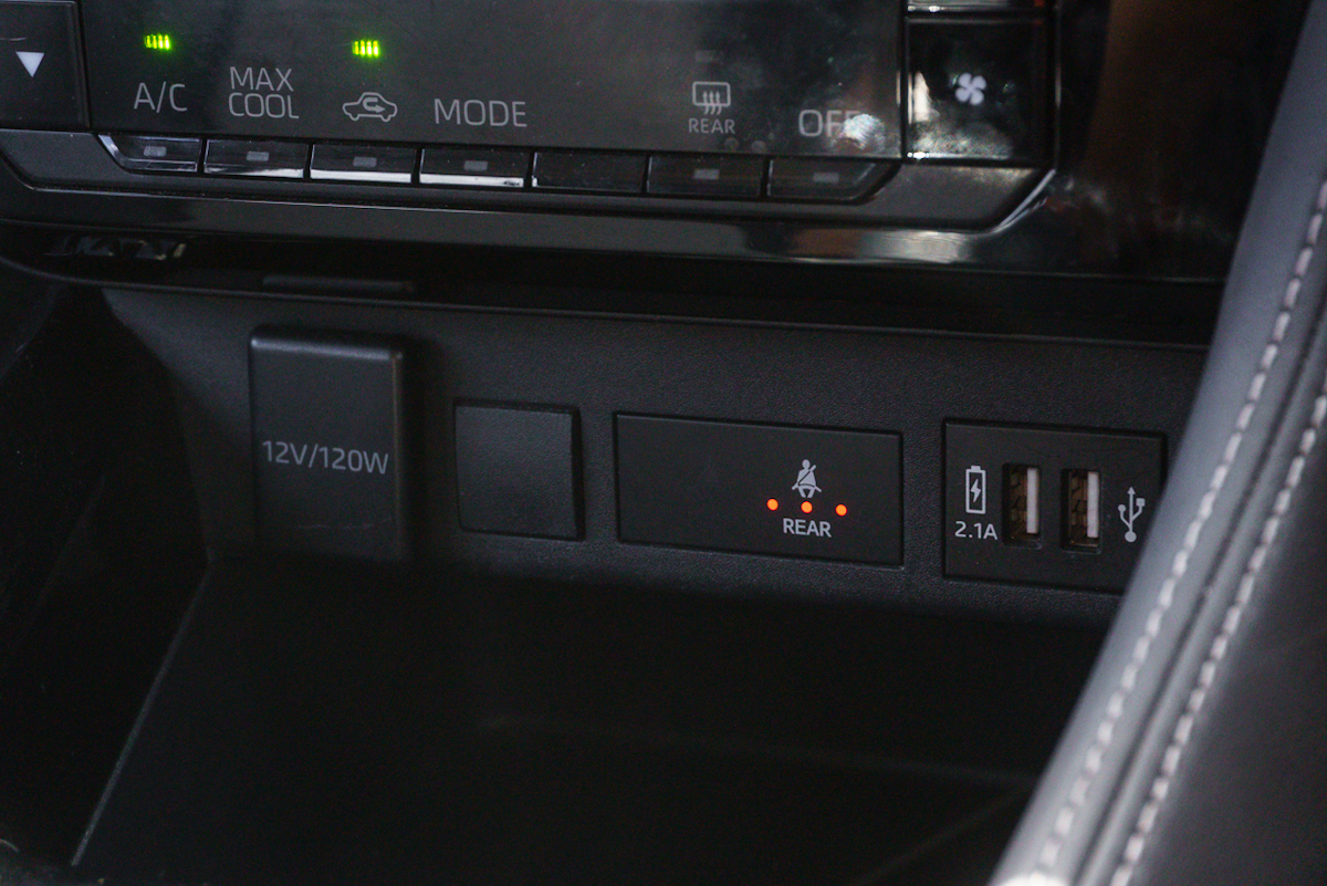 Accessories : -ปัดน้ำฝนกระจกหลัง -ไฟ Daytime Running Lights -ไฟส่องนำทางหลังจากดับเครื่องยนต์ -เบาะคนขับปรับสูง-ต่ำได้ -ตกแต่งภายใน (สีดำ) -ปลั๊กไฟ 12 โวลท์ -พวงมาลัยหุ้มหนัง -พวงมาลัยปรับสูง-ต่ำได้ -ภายในโทนสีดำ -หัวเกียร์หุ้มหนัง (ตกแต่งแบบสีเงินเมทัลลิก) -ระบบควบคุมการทรงตัวอัตโนมัติ (VSC-ควบคุมการทรงตัว/TRC-ป้องกันล้อหมุน-ฟรี/HAC-ช่วยออกตัวทางลาดชัน) -ตัวถังนิรภัย -เซ็นทรัลล็อค -สัญญาณกันขโมย -กุญแจรีโมท -กุญแจนิรภัย -ไฟเบรกดวงที่ 3 -สัญญาณเตือนถอยหลัง -ระบบป้องกันการโจรกรรม (TDS) -ระบบกระจายแรงเบรก EBD -เข็มขัดนิรภัย (แบบดึงรั้งกลับอัตโนมัติ) -พวงมาลัยยุบตัวได้ -กระจกนิรภัย -คานเหล็กเสริมนิรภัย -ระบบป้องกันล้อหมุนฟรี TRC -ระบบป้องกันล้อหมุนฟรีและควบคุมการลื่นไถล -ระบบเพิ่มแรงเบรกฉุกเฉิน EBA (Emergency Brake Assist) และระบบเบรกอัตโนมัติ BOS (Brake Override System