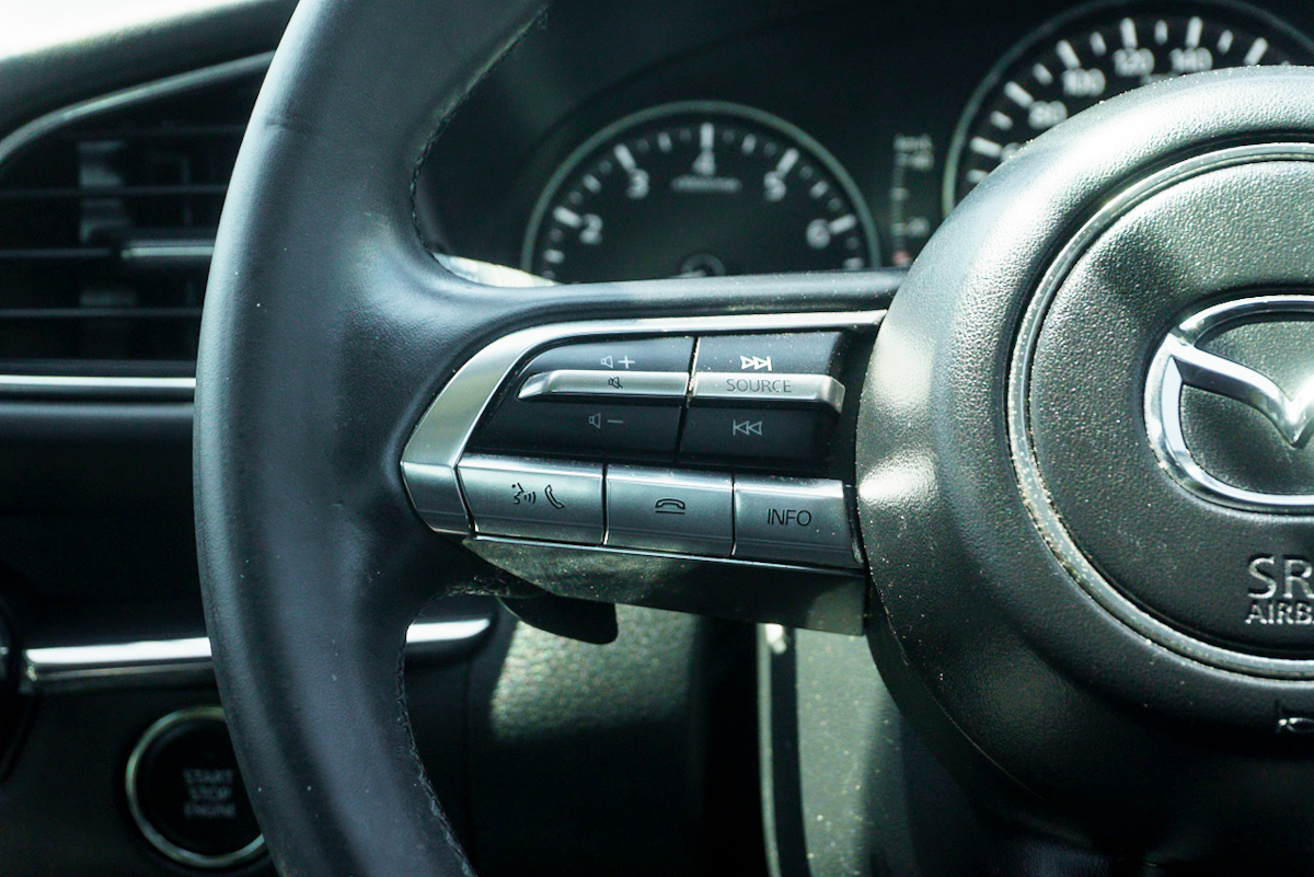 Accessories :-เครื่องยนต์เบนซิน 2.0 Skyactiv-G 165 แรงม้า 213 นิวตันเมตร -รองรับน้ำมันสูงสุด E85 -เกียร์อัตโนมัติ 6 จังหวะ Skyactiv-Drive พร้อม Manual Mode -ระบบช่วยประหยัดน้ำมัน i-STOP -สวิตซ์ Drive Selection : Sport Mode -ระบบเบรก ด้านหน้าดิสก์เบรก แบบมีครีบระบายความร้อน / ด้านหลัง ดิสก์เบรก -ไฟ Daytime Running Light แบบ LED -ไฟท้าย LED Signature -กระจังหน้า และ วัสดุตกแต่งเสา B-Pillar สีดำเงา Piano Black -กลางพวงมาลัย ตกแต่งด้วยสีเงินโครเมียม มือเปิดที่เก็บของด้านหน้า และ ปุ่มสตาร์ท สีเงินโครเมียม -ระบบปรับระดับไฟหน้าสูง-ต่ำ แบบอัตโนมัติ -ระบบไฟหน้า เปิด-ปิด แบบอัตโนมัติ -ไฟท้ายแบบ LED -สปอยเลอร์หลัง -ปลายท่อโครเมียมคู่แบบสปอร์ต -ระบบปัดน้ำฝนแบบอัตโนมัติ Rain Sensor -กระจกมองข้าง ปรับและพับ ด้วยไฟฟ้า -กระจกมองข้าง พับเก็บอัตโนมัติ -ภายในห้องโดยสาร โทนสีดำ -พวงมาลัยหุ้มด้วยหนัง -พวงมาลัยปรับได้ 4 ทิศทาง (ขึ้น-ลง-เข้า-ออก) -พวงมาลัยเพาเวอร์ไฟฟ้า EPAS -หัวเกียร์หุ้มด้วยหนัง -เบาะนั่งหุ้มด้วยหนัง สีดำ -เบาะนั่งคนขับ ปรับด้วยไฟฟ้า 10 ทิศทาง (พร้อมปรับดันหลังไฟฟ้า Lumbar Support) -เบาะนั่งคนขับ พร้อมระบบบันทึกตำแหน่ง Memory Seat 2 ตำแหน่ง -เบาะนั่งผู้โดยสารตอนหน้าปรับด้วยมือ 6 ทิศทาง -เบาะนั่งด้านหลัง แยกพับอิสระ 60 : 40 -ที่วางแขนเบาะนั่งด้านหลัง พร้อมที่วางแก้วน้ำ -ระบบปรับอากาศแบบอัตโนมัติ Dual Zone แยกอิสระซ้าย-ขวา -ช่องแอร์สำหรับผู้โดยสารตอนหลัง -ระบบเบรกมือไฟฟ้า Electronic Parking Brake -ระบบ Auto Brake Hold -ระบบกุญแจ Smart Keyless Entry -ปุ่มสตาร์ทเครื่องยนต์ Push Start Button -มาตรวัดแบบกึ่งดิจิตอล -มาตรวัดรอบ แบบเข็ม Analog -มาตรวัดความเร็ว และ หน้าจอแสดงข้อมูล MID แบบสี TFT รวมในชุดมาตรวัด -หน้าจอแสดงข้อมูลบนกระจกบังลมหน้า Active Driving Head-up Display -กระจกหน้าต่างไฟฟ้า ขึ้น-ลง แบบอัตโนมัติ One-Touch ทั้ง 4 บาน -กระจกหน้าต่าง พร้อมระบบป้องกันการหนีบ Protection Jam ทั้ง 4 บาน -แผงบังแดดคู่หน้า พร้อมกระจกแต่งหน้า และ ไฟส่องสว่าง -หน้าจอกลาง Center Display ขนาด 8.8 นิ้ว (ไม่ Touchscreen) -ปุ่มควบคุมหน้าจอ CENTER COMMANDER -สวิตซ์ควบคุมเครื่องเสียงบนพวงมาลัย -แป้นเปลี่ยนเกียร์ที่พวงมาลัย Paddle Shift -กระจกมองหลัง แบบปรับลดแสงอัตโนมัติ -ระบบเสียง Premium Sound จาก BOSE® -ช่องเชื่อมต่อ AUX -ช่องเชื่อมต่อ USB -ระบบเชื่อมต่อไร้สาย Bluetooth -ช่องชาร์จไฟ 12V -รองรับ Apple CarPlay / Android Auto -ระบบนำทาง Navigation System -ลำโพง 12 ตำแหน่ง พร้อม Sub-Woofer -ระบบเบรกป้องกันล้อล็อก (ABS) -ระบบกระจายแรงเบรก (EBD) -ระบบเสริมแรงเบรก (BA) -ระบบควบคุมเสถียรภาพการทรงตัว (DSC) -ระบบป้องกันล้อหมุนฟรี และ ลื่นไถล (TCS) -ระบบช่วยออกตัวบนทางลาดชัน (HLA) -ระบบเตือนเมื่อมีรถในมุมอับสายตาขณะเปลี่ยนเลน (ABSM) -ระบบเตือนเมื่อมีรถในมุมอับสายตาขณะถอยหลัง (RCTA) -ระบบควบคุมแรงบิดขณะเข้าโค้ง G-Vectoring Control แบบ PLUS -ระบบไฟหน้