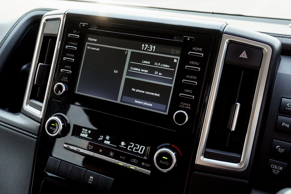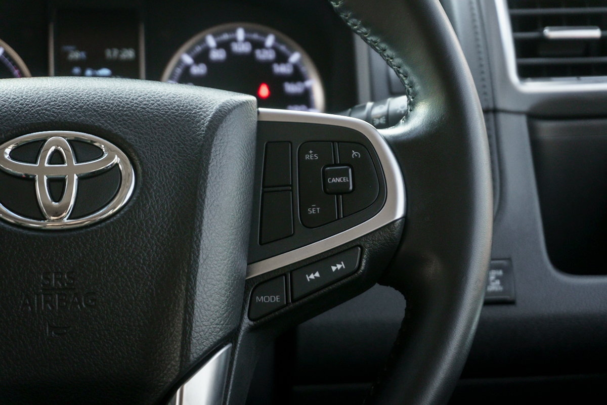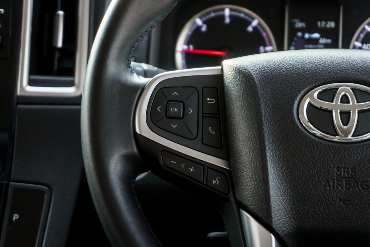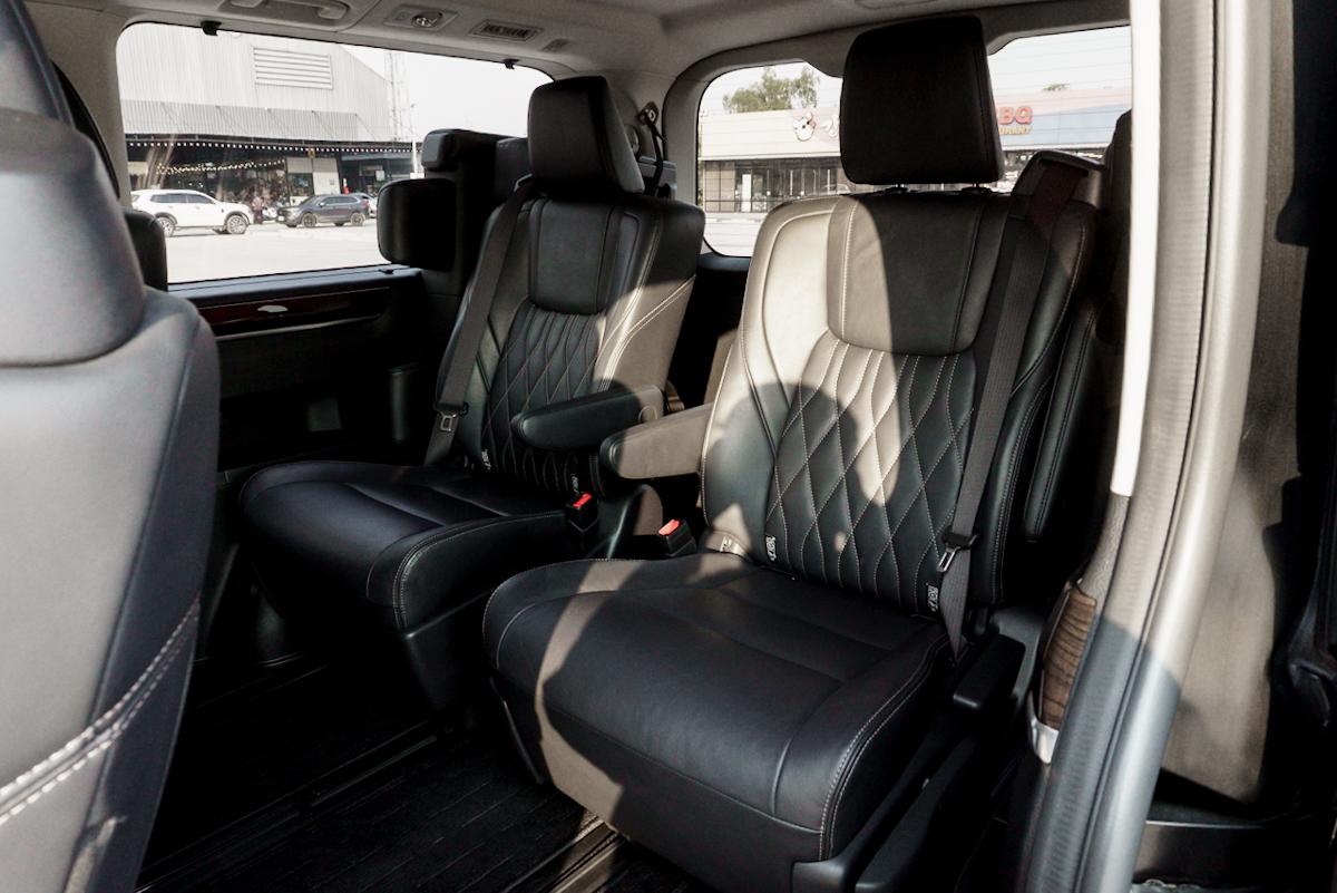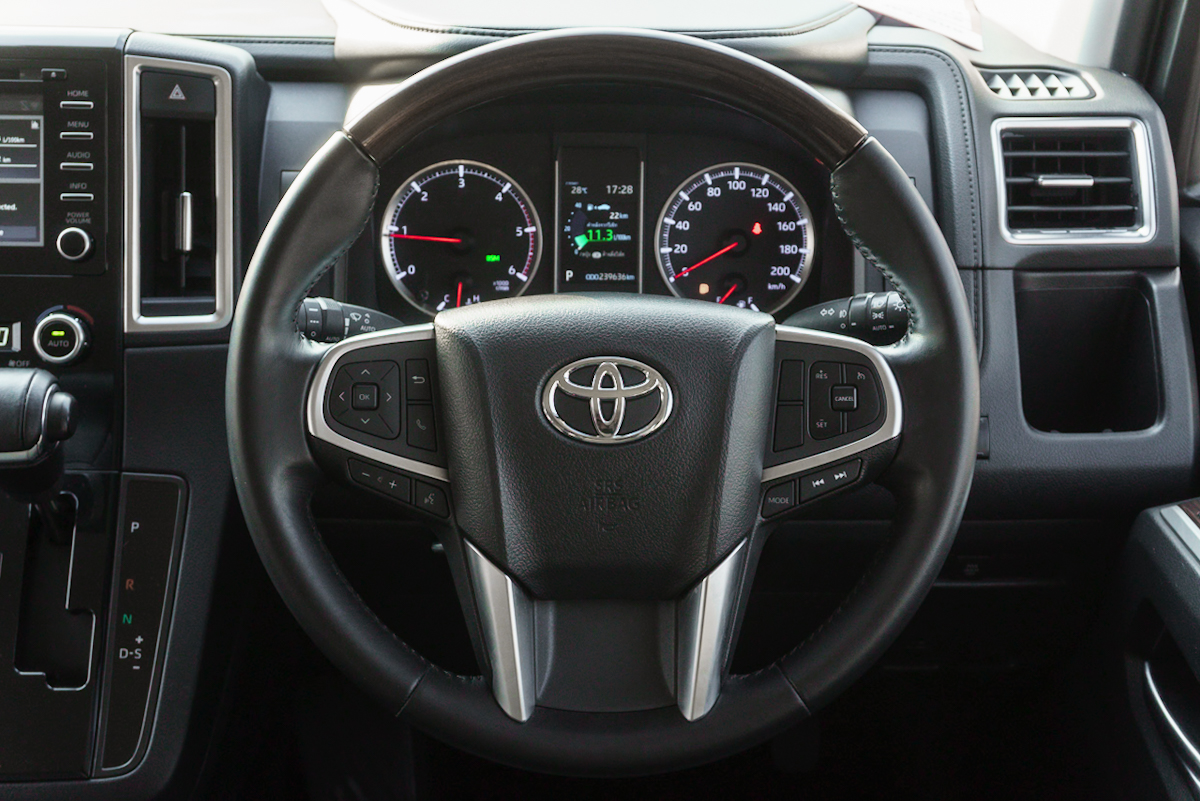 Accessories : -เครื่องยนต์ดีเซล 2.8 เทอร์โบ 163 แรงม้า 420 นิวตันเมตร -เกียร์อัตโนมัติ 6 จังหวะ พร้อม Sequential Shift -ระบบเบรกหน้า – หลัง ดิสก์เบรก พร้อมครีบระบายความร้อน -กระจังหน้า – กระจกมองข้าง – มือเปิดประตูภายนอก แบบโครเมียม -สเกิร์ดตรอบคัน -สปอยเลอร์หลัง -คิ้วกันกระแทกด้านข้าง -กระจกมองข้าง ปรับ และ พับ ด้วยไฟฟ้า -กระจกมองข้าง พับเก็บอัตโนมัติ เมื่อล็อครถ -ประตูสไลด์ ซ้าย – ขวา เปิด-ปิดด้วยระบบไฟฟ้า -ประตูสไลด์ไฟฟ้า พร้อมระบบป้องกันการหนีบ Protection Jam -ระบบกลไกช่วยปิดประตูสไลด์ซ้าย – ขวา Easy Door Closer -ฝาท้าย พร้อมระบบกลไกช่วยปิด Easy Door Closer -ไฟหน้า Projector Lens แบบ LED -ระบบไฟหน้าปรับระดับสูง-ต่ำ แบบอัตโนมัติ -ระบบเปิด-ปิด ไฟหน้า แบบอัตโนมัติ -ไฟ Daytime Running Light แบบ LED -ไฟตัดหมอกคู่หน้า -ไฟท้าย แบบ LED -ระบบปรับน้ำฝน แบบอัตโนมัติ Rain Sensor -พวงมาลัย ตกแต่งด้วยลายไม้ -พวงมาลัย ปรับได้ 4 ทิศทาง (ขึ้น-ลง-เข้า-ออก) -มาตรวัดเรืองแสง Optitron -หน้าจอแสดงข้อมูลการขับขี่ MID -ช่องชาร์จไฟ 12V 2 ตำแหน่ง -ช่องชาร์จไฟ USB 7 ตำแหน่ง -ไฟสร้างบรรยากาศภายในห้องโดยสาร illumination Ambient Light -ไฟอ่านหนังสือสำหรับผู้โดยสารด้านหลัง 4 ตำแหน่ง -ระบบปรับอากาศแบบอัตโนมัติ -ระบบปรับอากาศสำหรับผู้โดยสารตอนหลัง แยกส่วน พร้อมหน้าจอแสดงผล -เครื่องเสียงวิทยุ AM / FM / CD / DVD -หน้าจอเครื่องเสียงระบบสัมผัส Touchscreen ขนาด 7 นิ้ว -ระบบเชื่อมต่อไร้สาย Bluetooth -ลำโพง 6 ตำแหน่ง -เบาะนั่งหุ้มด้วยหนัง -เบาะนั่งคนขับ ปรับด้วยไฟฟ้า 8 ทิศทาง -เบาะนั่งแบบ 4 แถว 11 ที่นั่ง -เบาะนั่งจัดวางแบบ 3+2+2+4 ที่นั่ง -เบาะนั่งแถวที่ 2 แบบพรีเมียม Captain Seat หัวเบาะมิกกี้เม้าส์ -เบาะนั่งแถวที่ 2 ปรับเอนด้วยระบบไฟฟ้า -เบาะนั่งแถวที่ 2 พร้อมฟังก์ชั่นนวดบริหารหลัง ด้วยระบบไฟฟ้า -เบาะนั่งแถวที่ 2 พร้อมที่วางขาปรับยกได้ด้วยระบบไฟฟ้า -เบาะนั่งแถวที่ 3 แบบ Captain Seat พร้อมที่วางแขน -เบาะนั่งแถวที่ 4 แยกพับอิสระ 50 : 50 -เบาะนั่งแถวที่ 4 ยกพับเก็บขึ้นได้ -จุดยึดเบาะนั่งเด็ก ISOFIX 4 ตำแหน่ง -กุญแจรีโมท -ระบบกุญแจ Smart Keyless Entry -ปุ่มสตาร์ทเครื่องยนต์ Push Start Button -กระจกหน้าต่างไฟฟ้าคู่หน้า ขึ้น-ลง อัตโนมัติ -กระจกหน้าต่างคู่หน้า พร้อมระบบป้องกันการหนีบ Protection Jam -ระบบปรับสมดุลในอากาศ Nanoe -ระบบเซ็นทรัลล็อค -ระบบเบรกป้องกันล้อล็อค ABS -ระบบกระจายแรงเบรก EBD -ระบบเสริมแรงเบรก BA -ระบบควบคุมเสถียรภาพการทรงตัว VSC -ระบบป้องกันการลื่นไถล TRC -ระบบไฟฉุกเฉินอัตโนมัติเมื่อเบรกกะทันหัน ESS -ระบบควบคุมเฟืองท้าย Auto Limited Slip Difference -ระบบช่วยออกตัวบนทางลาดชัน HAC -ระบบช่วยเตือนมุมอับสายตาที่กระจกมองข้าง Blind Spot Monitoring -ระบบช่วยเตือนเมื่อมีรถตัดผ่านขณะถอยหลัง Rear Cross Traffic Alert -ระบบควบคุมความเร็วอัตโนมัติ Cruise Control 