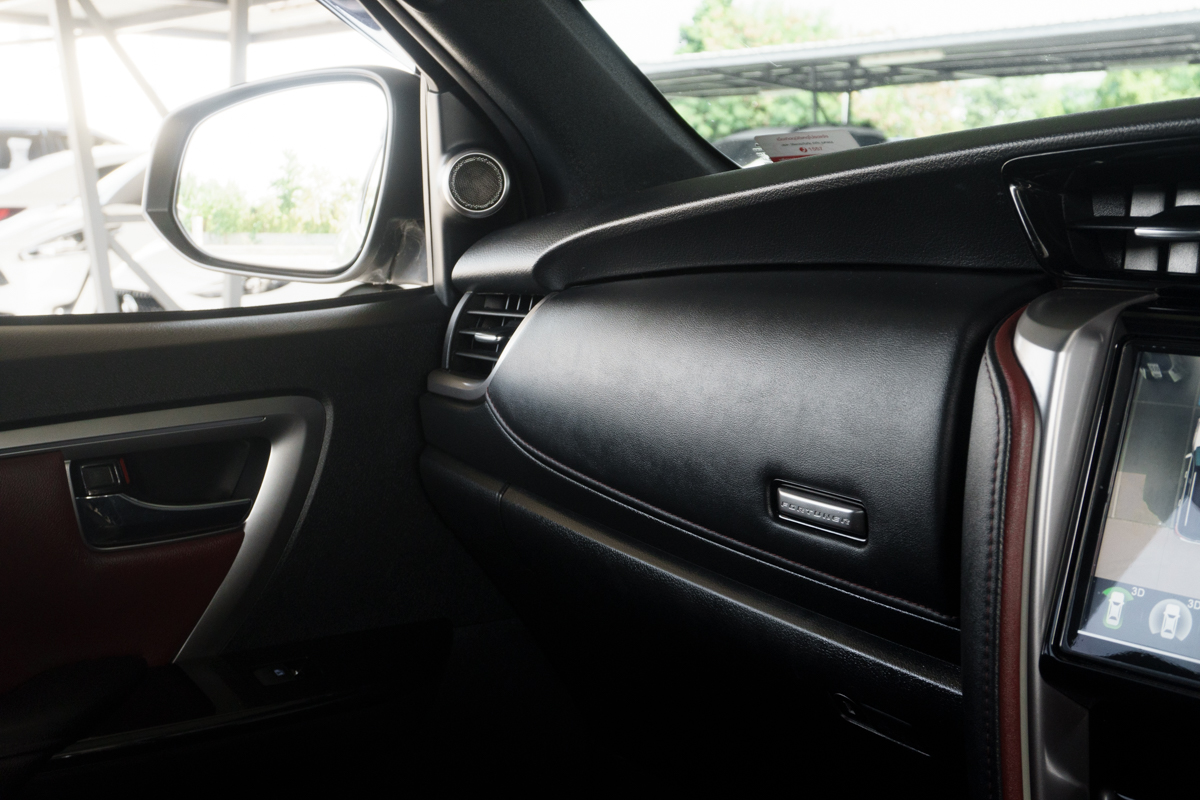 Accessories : -บันไดข้างเป็นสีดำ -คิ้วตกแต่งฝาท้ายเป็นสีดำ -ระบบเตือนเมื่อมีรถอยู่ในมุมอับสายตาด้านข้าง Blind Spot Monitor -ระบบเตือนเมื่อมีรถขณะถอย Rear Cross Traffic Alert -แผ่นกรองอากาศ PM 2.5 -โหมดการขับขี่ 3 รูปแบบ ECO/Normal/Sport -กระจังหน้าสีดำเงา -ชุดตกแต่งกันชนหน้าสีเงิน -ไฟหน้า Bi-Beam LED -ระบบเปิด-ปิดไฟหน้า แบบอัตโนมัติ -ระบบไฟหน้า Follow-me-home -ระบบไฟหน้าปรับระดับสูง-ต่ำ อัตโนมัติ -ไฟตัดหมอกคู่หน้าแบบ LED -ไฟท้าย LED แบบ Light Guiding -ไฟตัดหมอกด้านหลัง -ไฟเบรกดวงที่ 3 แบบ LED -ไฟเลี้ยว ด้านหน้า-ด้านหลัง LED แบบ Sequential -กระจกมองข้างสีเดียวกับตัวรถ ปรับและพับด้วยไฟฟ้า -กระจกมองข้างพร้อมไฟเลี้ยว -ระบบไฟ Welcome Light ที่กระจกมองข้าง -มือเปิดประตู แบบโครเมียม -ฝาท้ายเปิด-ปิดด้วยระบบไฟฟ้า พร้อมระบบป้องกันการหนีบ -ราวหลังคา -สปอยเลอร์หลัง -เสาอากาศแบบครีบฉลาม Shark Fin -เซ็นเซอร์กะระยะด้านหน้า – ด้านหลัง -ภายในห้องโดยสารโทนสีดำ -แดชบอร์ดหน้าบุนุ่มหุ้มด้วยหนัง สีดำ -แดชบอร์ดหน้า-แผงประตู บุนุ่มหุ้มด้วยหนังสีดำ -ช่องแอร์ ตกแต่งด้วยแถบสีเงินและโครเมียม -แผงควบคุมกระจกหน้าต่าง ตกแต่งด้วยสีดำเมทัลลิค -มือเปิดประตูภายใน แบบโครเมียม -ที่บังแดดคู่หน้า พร้อมกระจกแต่งหน้าและไฟส่องสว่าง -มือจับภายในห้องโดยสาร 8 ตำแหน่ง -ไฟส่องสว่างที่ประตู 4 บาน -พวงมาลัยปรับได้ 4 ทิศทาง (ขึ้น-ลง และเข้า-ออก) -พวงมาลัยหุ้มด้วยหนัง -วัสดุตกแต่งภายในห้องโดยสาร ลายไม้ พร้อมแถบสีเงิน -หัวเกียร์ เบรกมือ หุ้มด้วยหนัง -มาตรวัดเรืองแสง Optitron -หน้าจอแสดงข้อมูล MID แบบสี TFT ขนาด 4.2 นิ้ว -ฟังก์ชั่นแสดงองศาการเลี้ยวล้อหน้า Tire Turning Angle -กระจกมองหลัง แบบปรับลดแสงอัตโนมัติ -ปุ่มสตาร์ทเครื่องยนต์ Push Start/Stop Button -ระบบกุญแจ Smart Keyless Entry -ระบบเซ็นทรัลล็อค แบบ Speed Auto Lock -สวิตซ์เลือกโหมดการขับขี่ ECO / Normal / Sport -ระบบปรับอากาศแบบอัตโนมัติ -ระบบกรองอากาศ PM2.5 -สวิตซ์ควบคุมระบบปรับอากาศด้านหลังแบบแยกส่วน -ช่องเก็บของด้านบนแบบรักษาความเย็น Cool Box -ช่องชาร์จไฟ 12V 2 ตำแหน่ง -ช่องชาร์จไฟ AC 220V 1 ตำแหน่ง -หน้าจอชุดเครื่องเสียงระบบสัมผัส Touchscreen ขนาด 8 นิ้ว -สวิตซ์ควบคุมเครื่องเสียงบนพวงมาลัย -ระบบเชื่อมต่อไร้สาย Bluetooth -รองรับระบบ Apple CarPlay / Android Auto -ระบบ T-Connect -ลำโพง 6 ตำแหน่ง -เบาะนั่งหุ้มด้วยหนังสีดำ -เบาะนั่งคู่หน้าแบบสปอร์ต -เบาะนั่งคู่หน้าปรับด้วยไฟฟ้า 6 ทิศทาง -เบาะนั่งแถวที่ 2 แยกปรับและพับ 60 : 40 -เบาะนั่งแถวที่ 2 พนักพิงหลังปรับเอนได้ -เบาะนั่งแถวที่ 2 เบาะรองนั่งเลื่อนหน้า-ถอยหลังได้ -เบาะนั่งแถวที่ 2 พับแบบจังหวะเดียว One Touch -เบาะนั่งแถวที่ 3 แยกปรับและพับ 50 : 50 -ระบบเบรกป้องกันล้อล็อก ABS -ระบบกระจายแรงเบรก EBD -ระบบเสริมแรงเบรก BA -ระบบควบคุมก