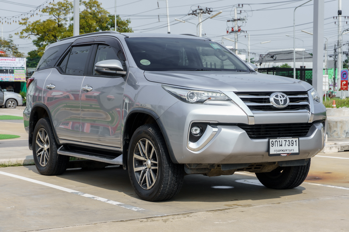 Brand : TOYOTA Model : FORTUNER ทะเบียน : 9กน7391 Year : 2019 Color : เทา Grade : 2.4 G Engine : 2400 cc. Type : ดีเซล Gear : อัตโนมัติ Mileage (เลขไมล์) : 164,xxx Km.