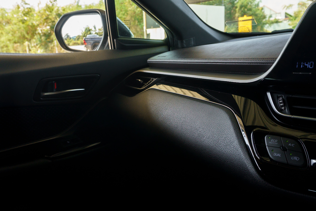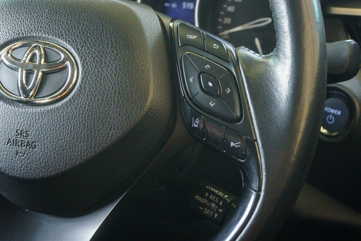 Accessories : -เครื่องยนต์เบนซิน 1.8 ลิตร 140 -แรงม้า 175 นิวตันเมตร เกียร์อัตโนมัติ CVT -ระบบเบรกด้านหนัา ดิสก์เบรก / ด้านหลัง ดิสก์เบรก -พวงมาลัยพาวเวอร์ไฟฟ้า EPS -ล้ออัลลอย ขนาด 17 นิ้ว พร้อมยาง 215/60 R17 -บังโคลนซุ้มล้อ ด้านหน้า -ไฟหน้า Projector Lens แบบฮาโลเจน -ไฟ Daytime Running Light แบบ LED -สวิตซ์ปรับระดับไฟหน้า สูง-ต่ำ -ระบบเปิด-ปิดไฟหน้า แบบอัตโนมัติ -ระบบไฟหน้า Follow me home -ไฟท้ายแบบ LED -ไฟตัดหมอกหลัง -กระจกมองข้างพร้อมไฟเลี้ยว LED ในตัว -กระจกมองข้าง ปรับและพับด้วยไฟฟ้า -กระจกมองข้าง พับเก็บแบบอัตโนมัติ -กระจกบังลมหน้าแบบกันเสียงรบกวน Acoustic Glass -สปอยเลอร์หลัง พร้อมไฟเบรกดวงที่ 3 แบบ LED -เสาอากาศแบบครีบฉลาม Shark Fin -มือเปิดประตูด้านนอก สีเดียวกับตัวรถ -คิ้วขอบกระจกหน้าต่างสีดำ -คิ้วตกแต่งเสากลางภายนอกสีดำ -แผ่นกันความร้อนใต้ฝากระโปรงหน้า -ภายในห้องโดยสาร โทนสีดำ -เบาะนั่งหุ้มด้วยผ้า -เบาะนั่งคู่หน้าแบบสปอร์ต -เบาะนั่งคนขับปรับด้วยมือ 6 ทิศทาง -เบาะนั่งผู้โดยสารตอนหน้า ปรับด้วยมือ 4 ทิศทาง -เบาะนั่งด้านหลังแยกพับอิสระ 60 : 40 -แผงกั้นสัมภาระด้ายท้าย -มือเปิดประตูด้านในโครเมียม -แผงบังแดดคู่หน้า พร้อมกระจกแต่งหน้า -พวงมาลัย และ ฐานเกียร์หุ้มด้วยหนัง -กระจกหน้าต่างไฟฟ้า ขึ้น-ลงอัตโนมัติ 4 บาน -กระจกหน้าต่าง พร้อมระบบป้องกันการหนีบ 4 บาน -มาตรวัด พร้อมหน้าจอแสดงข้อมูลการขับขี่แบบสี TFT ขนาด 4.2 นิ้ว -สวิตซ์ควบคุมหน้าจอ MID บนพวงมาลัย -ปุ่มเลือกโหมดการขับขี่ Sport / Eco Drive -ระบบเบรกมือไฟฟ้า EPB -ระบบ Auto Brake Hold -ระบบเซ็นทรัลล็อค -ระบบปรับอากาศแบบอัตโนมัติ แยกอิสระซ้าย-ขวา Dual Zone -หน้าจอเครื่องเสียงระบบสัมผัส Touchscreen ขนาด 7 นิ้ว -เครื่องเสียง วิทยุ AM FM CD MP3 DVD -ระบบเชื่อมต่อไร้สาย Bluetooth -ช่องเชื่อมต่อ USB / HDMI / SD Card -สวิตซ์ควบคุมเครื่องเสียงบนพวงมาลัย -ลำโพง 6 ตำแหน่ง -ระบบควบคุมความเร็วอัตโนมัติ Cruise Control -ระบบเบรก ABS / EBD / BA -ระบบควบคุมการทรงตัว VSC -ระบบป้องกันล้อหมุนฟรี TRC -ระบบช่วยออกตัวบนทางลาดชัน HAC -ชุดปะซ่อมยางฉุกเฉิน -ระบบแจ้งเตือนแรงดันลมยาง TPMS -ถุงลมนิรภัย 7 ตำแหน่ง (คู่หน้า-ด้านข้าง-ม่านนิรภัย-หัวเข่าคนขับ) -เซนเซอร์กะระยะด้านหน้า 4 ตำแหน่ง -เซนเซอร์กะระยะด้านหลัง 4 ตำแหน่ง -กล้องมองภาพขณะถอยจอด -จุดยึดเบาะนั่ง ISOFIX -ระบบกุญแจ Immobilizer และ สัญญาณกันขโมย TDS -ระบบปัดน้ำฝนแบบอัตโนมัติ Rain Sensor -แผงบังแดดคู่หน้า พร้อมไฟส่องสว่าง -กระจกมองหลัง แบบปรับลดแสงอัตโนมัติ -ระบบฟอกอากาศภายในห้องโดยสาร Nanoe -ระบบนำทาง Navigation System -ระบบปรับไฟสูงอัตโนมัติ Automatic High Beam Control -ระบบช่วยเตือนมุมอับสายตาที่กระจกมองข้าง Blind Spot Monitoring -ระบบช่วยเตือนเมื่อมีรถตัดผ่านขณะถอยหลัง Rear Cross Traffic Alert -ระบบเตือนเมื่อผู้
