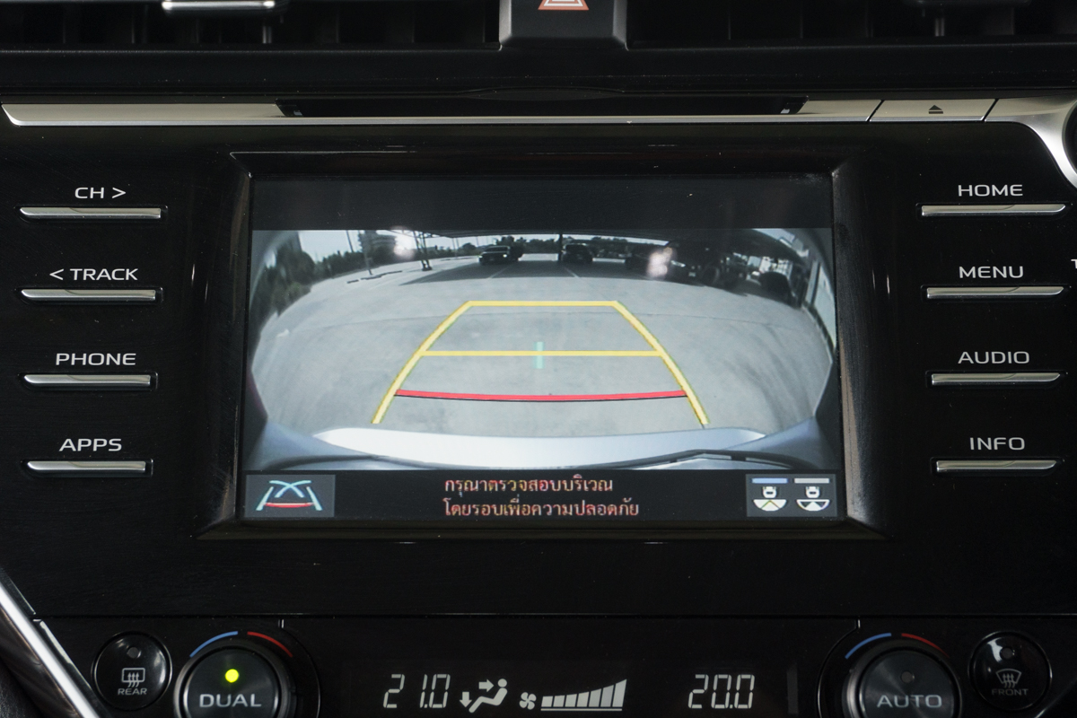 Accessories : -เกียร์อัตโนมัติ 6 จังหวะ พร้อม Sequntial Shift + – -ระบบตัดการทำงานเครื่องยนต์อัตโนมัติ Stop & Start System -ระบบเบรก หน้าดิสก์เบรก พร้อมช่องระบายความร้อน / หลังดิสก์เบรก -ไฟหน้า Projector Lens แบบ Bi-LED -ไฟ Daytime Running Lights แบบ LED -ระบบเปิด-ปิดไฟหน้า แบบอัตโนมัติ พร้อม Follow-me-home function -ระบบปรับระดับไฟหน้า สูง-ต่ำ แบบอัตโนมัติ -ไฟตัดหมอกคู่หน้า แบบ LED -กระจกบังลมหน้า AC HSEA : Acoustic High Solar Energy Absorb -กระจกมองข้าง ปรับและพับด้วยไฟฟ้า แบบลดการเกาะตัวของหยดน้ำ Hydrophilic -กระจกมองข้าง ปรับตำแหน่งอัตโนมัติ เมื่อเข้าเกียร์ถอยหลัง Reverse Link -ระบบบันทึกตำแหน่งกระจกมองข้าง Memory และ พับเก็บอัตโนมัติ Auto Retracable -เบาะนั่งคนขับ ปรับด้วยไฟฟ้า 8 ทิศทาง พร้อมปุ่มปรับดันหลัง Lumbar Support -ระบบบันทึกตำแหน่งเบาะนั่งคนขับ Memory Seat 2 ตำแหน่ง -เบาะนั่งผู้โดยสารตอนหน้า ปรับด้วยไฟฟ้า 8 ทิศทาง -ปุ่มปรับไฟฟ้า เบาะผู้โดยสารตอนหน้า บริเวณข้างพนักพิง -ระบบปรับอากาศแบบอัตโนมัติ Dual Zone แยกอิสระ ซ้าย-ขวา -ระบบกุญแจ Smart Keyless Entry -ปุ่มสตาร์ทเครื่องยนต์ Push Start Button -ระบบปัดน้ำฝนแบบอัตโนมัติ Rain Sensor -กระจกมองหลัง แบบปรับลดแสงอัตโนมัติ -ระบบเบรกมือไฟฟ้า EPB -ระบบหน่วงเบรกอัตโนมัติ ABH -ที่ชาร์จโทรศัพท์แบบไร้สาย Wireless Charging -ช่องชาร์จไฟ USB 2.1 A สำหรับผู้โดยสารตอนหลัง 2 ตำแหน่ง -มาตรวัดเรืองแสง Optitron -หน้าจอแสดงข้อมูล MID บนมาตรวัดแบบสี ขนาด 4.2 นิ้ว -ระบบควบคุมความเร็วอัตโนมัติ Cruise Control -สวิตซ์ควบคุมเครื่องเสียงบนพวงมาลัย -หน้าจอเครื่องเสียงระบบสัมผัส Touchscreen ขนาด 7 นิ้ว -เครื่องเสียงวิทยุ AM/FM CD MP3 และ เครื่องเล่น DVD -ช่องเชื่อมต่อ AUX / USB -ระบบเชื่อมต่อไร้สาย Bluetooth -ลำโพง 6 ตำแหน่ง -ระบบเบรกป้องกันล้อล็อค ABS -ระบบกระจายแรงเบรก EBD -ระบบเสริมแรงเบรก BA -ระบบควบคุมการทรงตัว VSC -ระบบป้องกันล้อหมุนฟรี TRC -ระบบช่วยการออกตัวบนทางลาดชัน HAC -ระบบช่วยเตือนมุมอับสายตาที่กระจกมองข้าง BSM -ระบบช่วยเตือนขณะถอยรถ RCTA -สัญญาณไฟฉุกเฉินเมื่อเบรกกะทันหัน ESS -ระบบตรวจวัดแรงดันลมยาง TPMS -ถุงลมนิรภัย 7 ตำแหน่ง (คู่หน้า-ด้านข้าง-ม่านนิรภัย) -กล้องมองภาพขณะถอยจอด พร้อมเส้นแนะนำการถอย -เซนเซอร์กะระยะช่วยจอด ด้านหน้า 2 ตำแหน่ง -เซนเซอร์กะระยะช่วยจอด ด้านหลัง 4 ตำแหน่ง -กุญแจ Immobilizer พร้อม สัญญาณกันขโมย