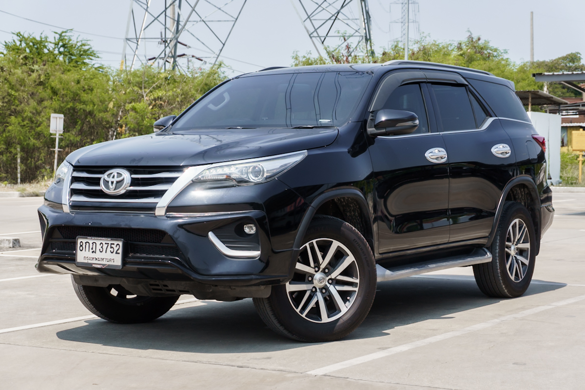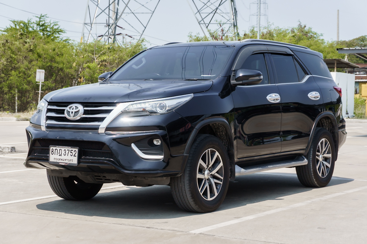 Brand : TOYOTA Model : FORTUNER ทะเบียน : 8กฎ3752 Year : 2018 Color : ดำ Grade : 2.4 V Engine : 2400 cc. Type : ดีเซล Gear : อัตโนมัติ Mileage (เลขไมล์) : 215,xxx Km.