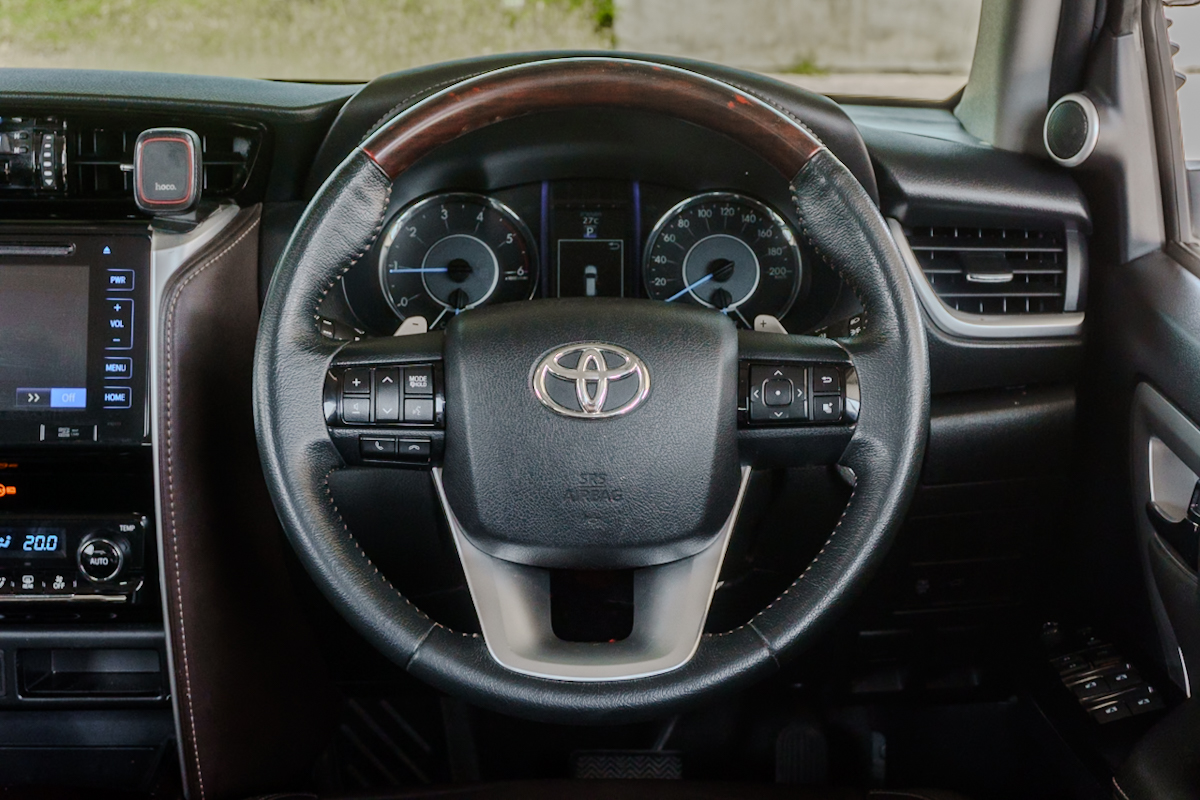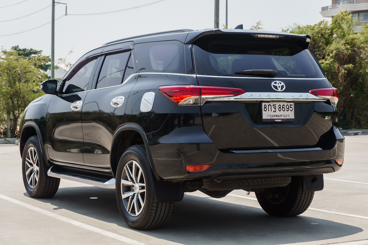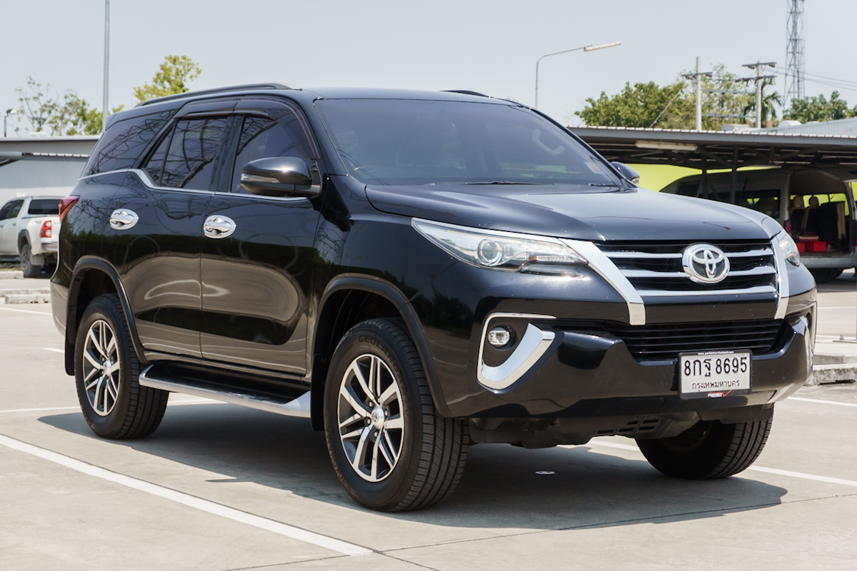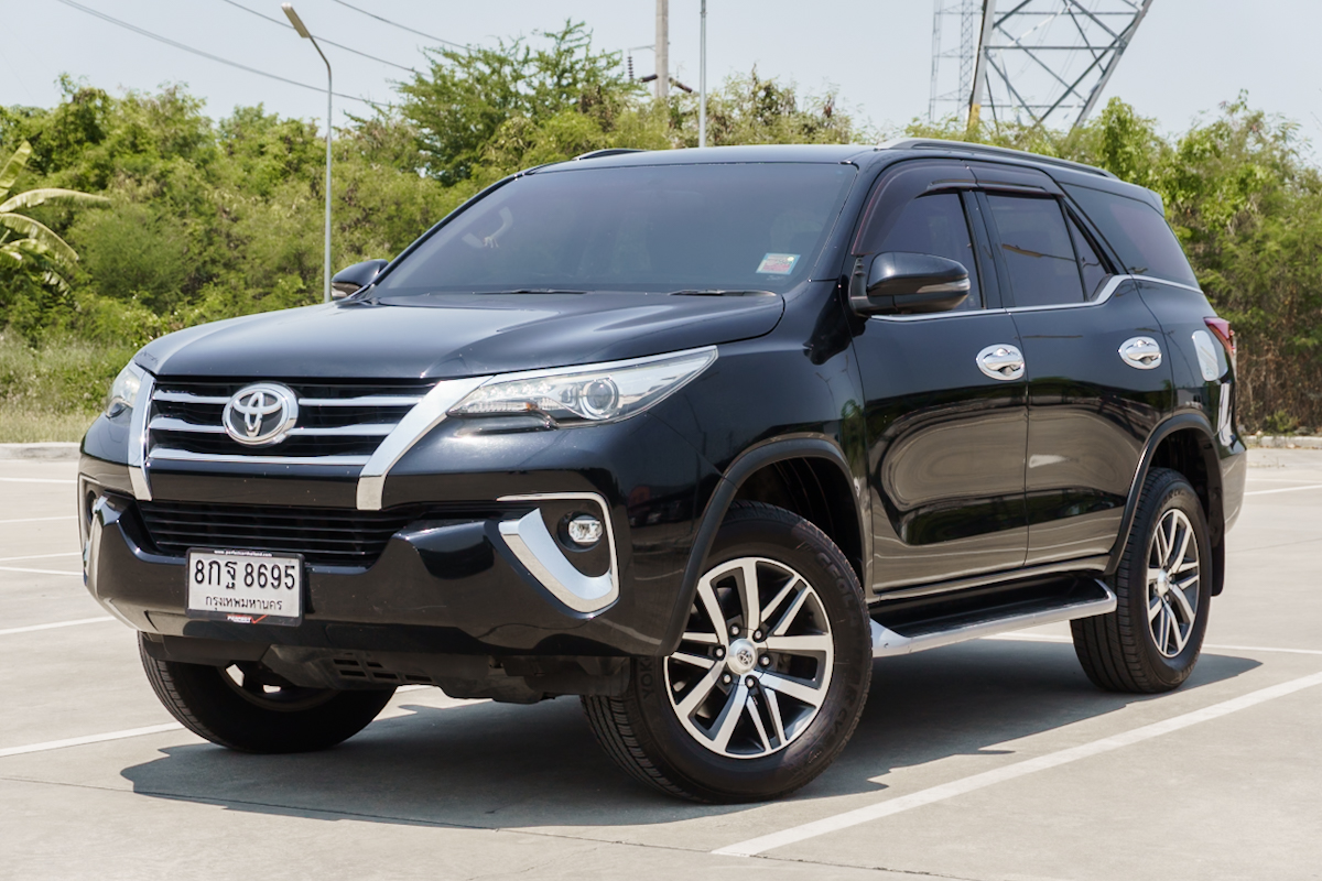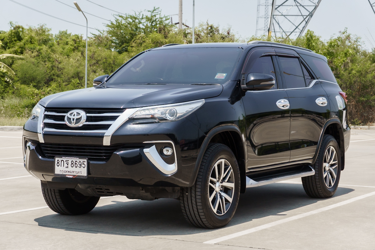 Brand : TOYOTA Model : FORTUNER ทะเบียน : 8กฐ8695 Year : 2018 Color : ดำ Grade : 2.4 V Engine : 2400 cc. Type : ดีเซล Gear : อัตโนมัติ Mileage (เลขไมล์) : 143,xxx Km.