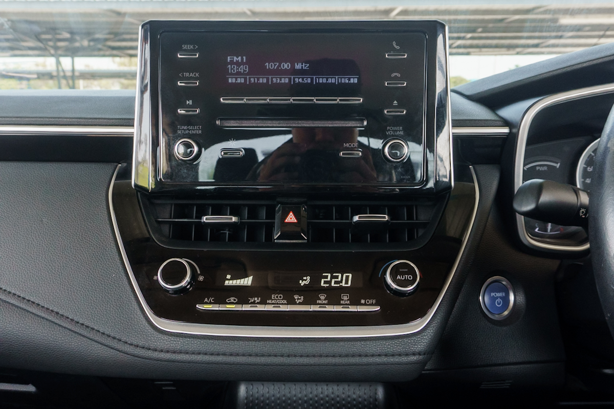 Accessories : -ไฟหน้า Projector Lens LED แบบรุ่น Hybrid -ระบบปรับระดับไฟหน้า สูง-ต่ำ -ระบบเปิด-ปิดไฟหน้าแบบอัตโนมัติ -กระจกมองข้างปรับและพับด้วยไฟฟ้าพร้อมไฟเลี้ยวในตัว -กระจกบังลมหน้า แบบกันเสียงรบกวน Acoustic Glass -พวงมาลัยปรับได้ 4 ทิศทาง (ขึ้น-ลง-เข้า-ออก) -พวงมาลัยหุ้มด้วยหนัง -หัวเกียร์หุ้มด้วยหนัง -เบาะนั่งหุ้มด้วยหนังสีดำ -เบาะนั่งคนขับ ปรับด้วยไฟฟ้า -เบาะนั่งคนขับ ปรับดันหลังไฟฟ้า Lumbar Support -เบาะนั่งด้านหลัง แยกพับอิสระ 60 : 40 -ที่วางแขนตรงกลางเบาะนั่งด้านหลัง -ช่องใส่เอกสารด้านหลังเบาะนั่งคนขับ -หน้าจอเครื่องเสียงระบบสัมผัส Touchscreen ขนาด 8 นิ้ว -รองรับ Apple CarPlay / Android Auto -ชุดมาตรวัด Optitron แบบครึ่งวงกลม -หน้าจอแสดงข้อมูลการขับขี่ MID แบบสี TFT ขนาด 7 นิ้ว -เครื่องเสียงวิทยุ AM/FM/CD -ระบบกุญแจ Smart Keyless Entry -ปุ่มสตาร์ทเครื่องยนต์ Push Start Button -ระบบเบรกมือไฟฟ้า EPB -ระบบ Auto Brake Hold -ที่บังแดดคู่หน้า พร้อมกระจก และ ไฟส่องสว่าง -ระบบเบรกป้องกันล้อล็อค ABS -ระบบกระจายแรงเบรก EBD -ระบบเสริมแรงเบรก BA -ระบบควบคุมการทรงตัว VSC -ระบบป้องกันการลื่นไถล TRC -ระบบช่วยออกตัวบนทางลาดชัน HAC -ระบบไฟฉุกเฉินเมื่อเบรกกะทันหัน ESS -ช่องเชื่อมต่อ USB -ระบบเชื่อมต่อไร้สาย Bluetooth -ลำโพง 6 ตำแหน่ง -ช่องแอร์สำหรับผู้โดยสารตอนหลัง -ระบบกุญแจ Immobilizer -เซนเซอร์กะระยะช่วยจอด ด้านหลัง