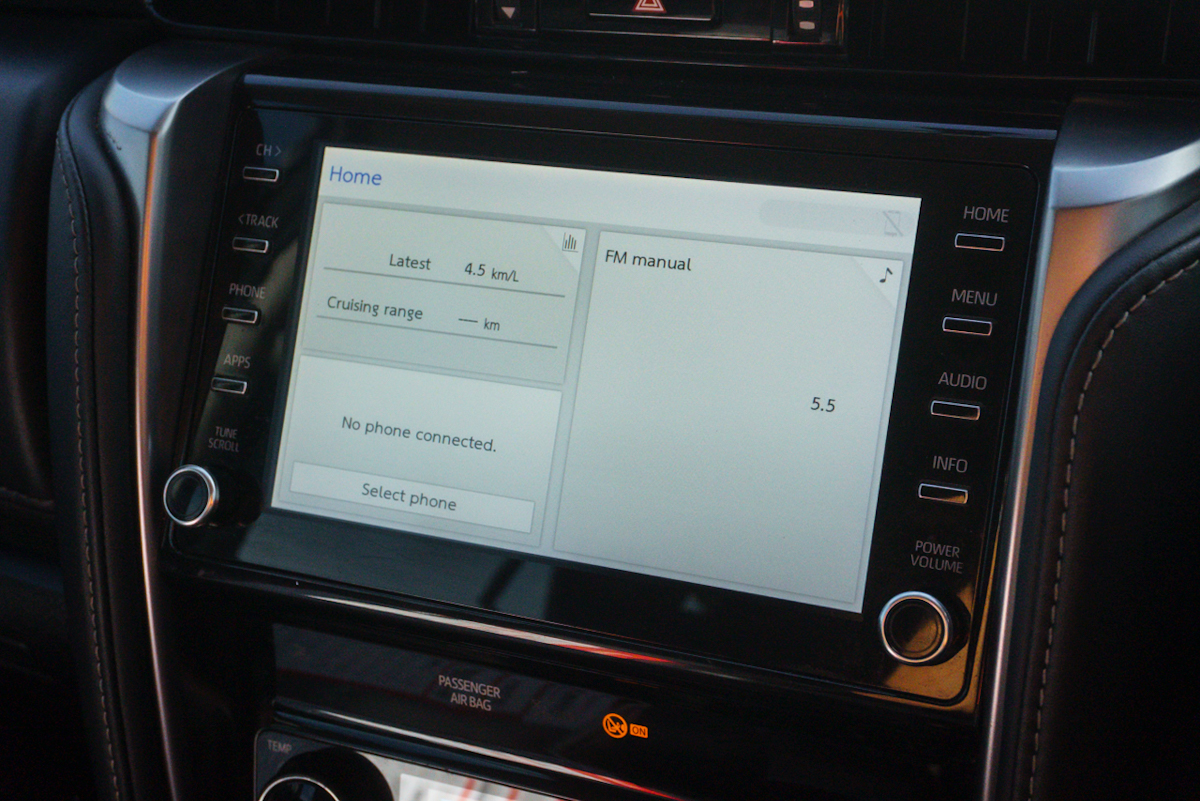 Accessories : -บันไดข้างเป็นสีดำ -คิ้วตกแต่งฝาท้ายเป็นสีดำ -ระบบเตือนเมื่อมีรถอยู่ในมุมอับสายตาด้านข้าง Blind Spot Monitor -ระบบเตือนเมื่อมีรถขณะถอย Rear Cross Traffic Alert -แผ่นกรองอากาศ PM 2.5 -โหมดการขับขี่ 3 รูปแบบ ECO/Normal/Sport -กระจังหน้าสีดำเงา -ชุดตกแต่งกันชนหน้าสีเงิน -ไฟหน้า Bi-Beam LED -ระบบเปิด-ปิดไฟหน้า แบบอัตโนมัติ -ระบบไฟหน้า Follow-me-home -ระบบไฟหน้าปรับระดับสูง-ต่ำ อัตโนมัติ -ไฟตัดหมอกคู่หน้าแบบ LED -ไฟท้าย LED แบบ Light Guiding -ไฟตัดหมอกด้านหลัง -ไฟเบรกดวงที่ 3 แบบ LED -ไฟเลี้ยว ด้านหน้า-ด้านหลัง LED แบบ Sequential -กระจกมองข้างสีเดียวกับตัวรถ ปรับและพับด้วยไฟฟ้า -กระจกมองข้างพร้อมไฟเลี้ยว -ระบบไฟ Welcome Light ที่กระจกมองข้าง -มือเปิดประตู แบบโครเมียม -ฝาท้ายเปิด-ปิดด้วยระบบไฟฟ้า พร้อมระบบป้องกันการหนีบ -ราวหลังคา -สปอยเลอร์หลัง -เสาอากาศแบบครีบฉลาม Shark Fin -เซ็นเซอร์กะระยะด้านหน้า – ด้านหลัง -ภายในห้องโดยสารโทนสีดำ -แดชบอร์ดหน้าบุนุ่มหุ้มด้วยหนัง สีดำ -แดชบอร์ดหน้า-แผงประตู บุนุ่มหุ้มด้วยหนังสีดำ -ช่องแอร์ ตกแต่งด้วยแถบสีเงินและโครเมียม -แผงควบคุมกระจกหน้าต่าง ตกแต่งด้วยสีดำเมทัลลิค -มือเปิดประตูภายใน แบบโครเมียม -ที่บังแดดคู่หน้า พร้อมกระจกแต่งหน้าและไฟส่องสว่าง -มือจับภายในห้องโดยสาร 8 ตำแหน่ง -ไฟส่องสว่างที่ประตู 4 บาน -พวงมาลัยปรับได้ 4 ทิศทาง (ขึ้น-ลง และเข้า-ออก) -พวงมาลัยหุ้มด้วยหนัง -วัสดุตกแต่งภายในห้องโดยสาร ลายไม้ พร้อมแถบสีเงิน -หัวเกียร์ เบรกมือ หุ้มด้วยหนัง -มาตรวัดเรืองแสง Optitron -หน้าจอแสดงข้อมูล MID แบบสี TFT ขนาด 4.2 นิ้ว -ฟังก์ชั่นแสดงองศาการเลี้ยวล้อหน้า Tire Turning Angle -กระจกมองหลัง แบบปรับลดแสงอัตโนมัติ -ปุ่มสตาร์ทเครื่องยนต์ Push Start/Stop Button -ระบบกุญแจ Smart Keyless Entry -ระบบเซ็นทรัลล็อค แบบ Speed Auto Lock -สวิตซ์เลือกโหมดการขับขี่ ECO / Normal / Sport -ระบบปรับอากาศแบบอัตโนมัติ -ระบบกรองอากาศ PM2.5 -สวิตซ์ควบคุมระบบปรับอากาศด้านหลังแบบแยกส่วน -ช่องเก็บของด้านบนแบบรักษาความเย็น Cool Box -ช่องชาร์จไฟ 12V 2 ตำแหน่ง -ช่องชาร์จไฟ AC 220V 1 ตำแหน่ง -หน้าจอชุดเครื่องเสียงระบบสัมผัส Touchscreen ขนาด 8 นิ้ว -สวิตซ์ควบคุมเครื่องเสียงบนพวงมาลัย -ระบบเชื่อมต่อไร้สาย Bluetooth -รองรับระบบ Apple CarPlay / Android Auto -ระบบ T-Connect -ลำโพง 6 ตำแหน่ง -เบาะนั่งหุ้มด้วยหนังสีดำ -เบาะนั่งคู่หน้าแบบสปอร์ต -เบาะนั่งคู่หน้าปรับด้วยไฟฟ้า 6 ทิศทาง -เบาะนั่งแถวที่ 2 แยกปรับและพับ 60 : 40 -เบาะนั่งแถวที่ 2 พนักพิงหลังปรับเอนได้ -เบาะนั่งแถวที่ 2 เบาะรองนั่งเลื่อนหน้า-ถอยหลังได้ -เบาะนั่งแถวที่ 2 พับแบบจังหวะเดียว One Touch -เบาะนั่งแถวที่ 3 แยกปรับและพับ 50 : 50 -ระบบเบรกป้องกันล้อล็อก ABS -ระบบกระจายแรงเบรก EBD -ระบบเสริมแรงเบรก BA -ระบบควบคุมก