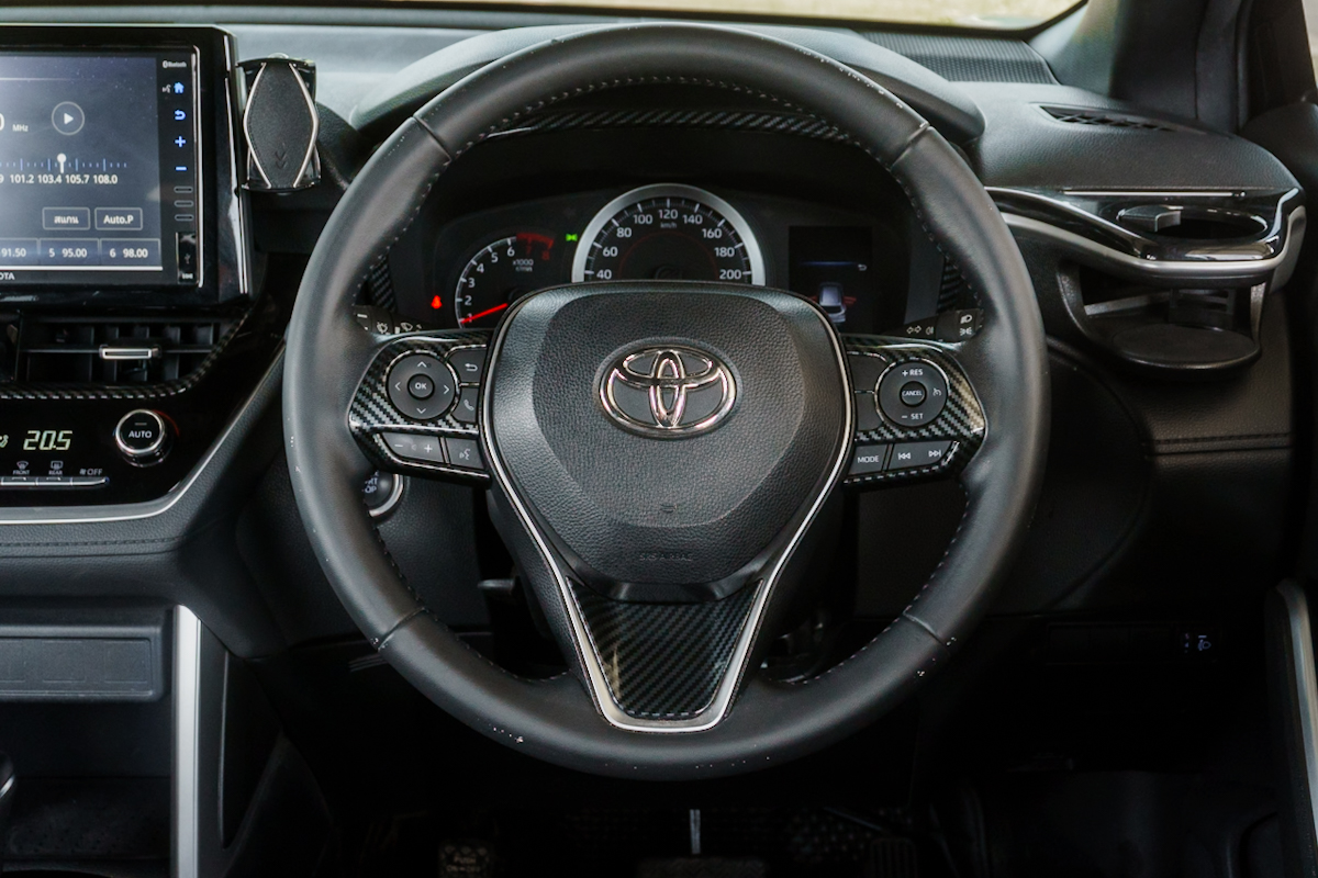 Accessories : -เครื่องยนต์เบนซิน 1.8 ลิตร 140 แรงม้า -เกียร์อัตโนมัติ CVT-i พร้อมโปรแกรมอัตราทดเกียร์ 7 จังหวะ -ระบบเบรกด้านหน้า : ดิสก์เบรก พร้อมครีบระบายความร้อน -ระบบเบรกด้านหลัง : ดิสก์เบรก -พวงมาลัยพาวเวอร์ไฟฟ้า EPAS -โครงสร้างตัวถัง และ งานวิศวกรรม TNGA : Toyota New Global Architecture -ช่วงล่างด้านหน้า : MacPherson Strut พร้อมเหล็กกันโคลง -ช่วงล่างด้านหลัง : Torsion Beam พร้อมเหล็กกันโคลง -ไฟหน้า Projector Lens แบบฮาโลเจน -ไฟ Daytime Running Light หลอดธรรมดา -ระบบไฟหน้า Follow-me-home -ไฟท้าย LED -กระจกมองข้าง ปรับระดับอัตโนมัติ เมื่อเข้าเกียร์ถอยหลัง -วัสดุตกแต่งภายในห้องโดยสาร สีดำเงา Piano Black -เบาะนั่งคนขับ ปรับด้วยไฟฟ้า 8 ทิศทาง -ไฟส่องสว่างบริเวณประตูคู่หน้า และ ที่วางแก้วน้ำ -ฝาท้าย เปิด-ปิดด้วยระบบไฟฟ้า -ระบบเปิด-ปิด ฝาท้ายโดยไม่ต้องใช้มือ Kick Activated -ระบบปัดน้ำฝนแบบอัตโนมัติ Rain Sensor -ไฟตัดหมอกด้านหลัง -เสาอากาศแบบครีบฉลาม Shark Fin -แผ่นกันความร้อนใต้ฝากระโปรง -เบาะนั่งคนขับ ปรับด้วยมือ 6 ทิศทาง -เบาะนั่งผู้โดยสารตอนหน้า ปรับด้วยมือ 4 ทิศทาง -ที่วางแขน เบาะนั่งคู่หน้า ปรับเลื่อนได้ -ช่องเก็บเอกสาร ด้านหลังเบาะนั่งผู้โดยสารตอนหน้า -มือเปิดประตูภายในห้องโดยสารโครเมียม -พวงมาลัยหุ้มด้วยหนัง -พวงมาลัยปรับได้ 4 ทิศทาง (ขึ้น-ลง-เข้า-ออก) -กระจกหน้าต่างไฟฟ้า พร้อมระบบป้องกันการหนีบ 4 บาน -ที่บังแดดคู่หน้า พร้อมกระจกแต่งหน้า และ ไฟส่องสว่าง -ไฟอ่านแผนที่ด้านหน้า -ไฟส่องสว่างภายในห้องโดยสาร -แผงกั้นสัมภาระด้านท้าย -ระบบกุญแจ Smart Keyless Entry -ปุ่มสตาร์ทเครื่องยนต์ Push Start Button -ราวมือจับในห้องโดยสาร 4 ตำแหน่ง พร้อมราวแขวนเสื้อด้านหลัง -ระบบปรับอากาศแบบอัตโนมัติ -ช่องชาร์จไฟ USB สำหรับผู้โดยสารตอนหลัง 2 ตำแหน่ง -หน้าจอแสดงข้อมูลการขับขี่แบบสี TFT ขนาด 7 นิ้ว -หน้าจอเครื่องเสียงระบบสัมผัส Touchscreen ขนาด 9 นิ้ว -สวิตซ์ควบคุมเครื่องเสียงบนพวงมาลัย -รองรับระบบ Apple CarPlay / Android Auto -ช่องเชื่อมต่อ USB -ระบบเชื่อมต่อไร้สาย Bluetooth -ลำโพง 6 ตำแหน่ง -ระบบโทรออกด้วยเสียง -ไฟตัดหมอกคู่หน้า แบบ LED -ระบบแจ้งเตือนแรงดันลมยาง TPMS -ระบบช่วยเตือนมุมอับสายตาที่กระจกมองข้าง BSM -ระบบช่วยเตือนเมื่อมีรถตัดผ่านขณะถอยหลัง RCTA -ระบบ T-Connect Telematics -ระบบเบรกป้องกันล้อล็อค ABS -ระบบกระจายแรงเบรก EBD -ระบบเสริมแรงเบรก BA -ระบบควบคุมการทรงตัว VSC -ระบบป้องกันการลื่นไถล TRC -ระบบช่วยออกตัวบนทางลาดชัน HAC -ระบบป้องกันการออกตัวแบบฉุกเฉิน Drive Start Control -กระจกมองหลัง แบบปรับลดแสงอัตโนมัติ -กล้องมองภาพรอบคัน 360 องศา -ระบบความปลอดภัยก่อนการชน และ เบรกอัตโนมัติ Pre-Collision System -ระบบควบคุมความเร็วอัตโนมัติ แบบแปรผัน Dynamic Radar Cruise Control -ระบบปรับไฟสูงอัตโนมัติ Automatic High Beam Contr