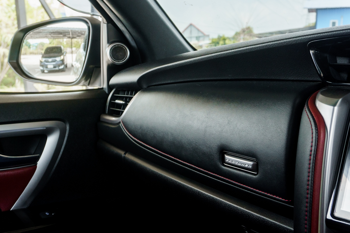 Accessories : -บันไดข้างเป็นสีดำ -คิ้วตกแต่งฝาท้ายเป็นสีดำ -ระบบเตือนเมื่อมีรถอยู่ในมุมอับสายตาด้านข้าง Blind Spot Monitor -ระบบเตือนเมื่อมีรถขณะถอย Rear Cross Traffic Alert -แผ่นกรองอากาศ PM 2.5 -โหมดการขับขี่ 3 รูปแบบ ECO/Normal/Sport -กระจังหน้าสีดำเงา -ชุดตกแต่งกันชนหน้าสีเงิน -ไฟหน้า Bi-Beam LED -ระบบเปิด-ปิดไฟหน้า แบบอัตโนมัติ -ระบบไฟหน้า Follow-me-home -ระบบไฟหน้าปรับระดับสูง-ต่ำ อัตโนมัติ -ไฟตัดหมอกคู่หน้าแบบ LED -ไฟท้าย LED แบบ Light Guiding -ไฟตัดหมอกด้านหลัง -ไฟเบรกดวงที่ 3 แบบ LED -ไฟเลี้ยว ด้านหน้า-ด้านหลัง LED แบบ Sequential -กระจกมองข้างสีเดียวกับตัวรถ ปรับและพับด้วยไฟฟ้า -กระจกมองข้างพร้อมไฟเลี้ยว -ระบบไฟ Welcome Light ที่กระจกมองข้าง -มือเปิดประตู แบบโครเมียม -ฝาท้ายเปิด-ปิดด้วยระบบไฟฟ้า พร้อมระบบป้องกันการหนีบ -ราวหลังคา -สปอยเลอร์หลัง -เสาอากาศแบบครีบฉลาม Shark Fin -เซ็นเซอร์กะระยะด้านหน้า – ด้านหลัง -ภายในห้องโดยสารโทนสีดำ -แดชบอร์ดหน้าบุนุ่มหุ้มด้วยหนัง สีดำ -แดชบอร์ดหน้า-แผงประตู บุนุ่มหุ้มด้วยหนังสีดำ -ช่องแอร์ ตกแต่งด้วยแถบสีเงินและโครเมียม -แผงควบคุมกระจกหน้าต่าง ตกแต่งด้วยสีดำเมทัลลิค -มือเปิดประตูภายใน แบบโครเมียม -ที่บังแดดคู่หน้า พร้อมกระจกแต่งหน้าและไฟส่องสว่าง -มือจับภายในห้องโดยสาร 8 ตำแหน่ง -ไฟส่องสว่างที่ประตู 4 บาน -พวงมาลัยปรับได้ 4 ทิศทาง (ขึ้น-ลง และเข้า-ออก) -พวงมาลัยหุ้มด้วยหนัง -วัสดุตกแต่งภายในห้องโดยสาร ลายไม้ พร้อมแถบสีเงิน -หัวเกียร์ เบรกมือ หุ้มด้วยหนัง -มาตรวัดเรืองแสง Optitron -หน้าจอแสดงข้อมูล MID แบบสี TFT ขนาด 4.2 นิ้ว -ฟังก์ชั่นแสดงองศาการเลี้ยวล้อหน้า Tire Turning Angle -กระจกมองหลัง แบบปรับลดแสงอัตโนมัติ -ปุ่มสตาร์ทเครื่องยนต์ Push Start/Stop Button -ระบบกุญแจ Smart Keyless Entry -ระบบเซ็นทรัลล็อค แบบ Speed Auto Lock -สวิตซ์เลือกโหมดการขับขี่ ECO / Normal / Sport -ระบบปรับอากาศแบบอัตโนมัติ -ระบบกรองอากาศ PM2.5 -สวิตซ์ควบคุมระบบปรับอากาศด้านหลังแบบแยกส่วน -ช่องเก็บของด้านบนแบบรักษาความเย็น Cool Box -ช่องชาร์จไฟ 12V 2 ตำแหน่ง -ช่องชาร์จไฟ AC 220V 1 ตำแหน่ง -หน้าจอชุดเครื่องเสียงระบบสัมผัส Touchscreen ขนาด 8 นิ้ว -สวิตซ์ควบคุมเครื่องเสียงบนพวงมาลัย -ระบบเชื่อมต่อไร้สาย Bluetooth -รองรับระบบ Apple CarPlay / Android Auto -ระบบ T-Connect -ลำโพง 6 ตำแหน่ง -เบาะนั่งหุ้มด้วยหนังสีดำ -เบาะนั่งคู่หน้าแบบสปอร์ต -เบาะนั่งคู่หน้าปรับด้วยไฟฟ้า 6 ทิศทาง -เบาะนั่งแถวที่ 2 แยกปรับและพับ 60 : 40 -เบาะนั่งแถวที่ 2 พนักพิงหลังปรับเอนได้ -เบาะนั่งแถวที่ 2 เบาะรองนั่งเลื่อนหน้า-ถอยหลังได้ -เบาะนั่งแถวที่ 2 พับแบบจังหวะเดียว One Touch -เบาะนั่งแถวที่ 3 แยกปรับและพับ 50 : 50 -ระบบเบรกป้องกันล้อล็อก ABS -ระบบกระจายแรงเบรก EBD -ระบบเสริมแรงเบรก BA -ระบบควบคุมก