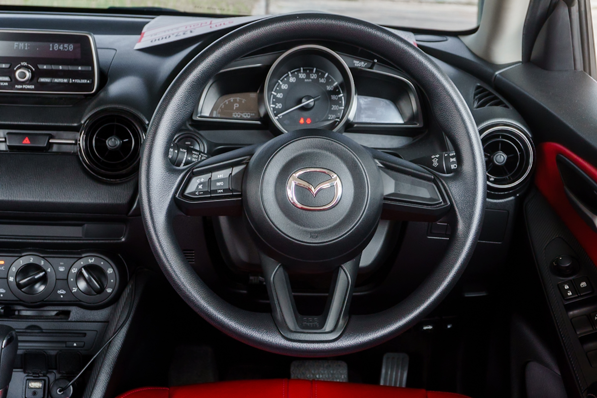 Accessories : -เกียร์อัตโนมัติ 6 จังหวะ Skyacitv-Drive พร้อม Manual Mode + – -ระบบควบคุมสมรรถนะการขับขี่ G-Vectoring Control PLUS -ระบบดับเครื่องยนต์อัตโนมัติ i-STOP / i-ELOOP -ปุ่ม Sport Mode Drive Selection -ระบบเบรก คู่หน้า ดิสก์เบรก / คู่หลัง ดรัมเบรก -พวงมาลัยพาวเวอร์ไฟฟ้า EPAS -ช่วงล่างด้านหน้า McPherson Strut พร้อมเหล็กกันโคลง -ช่วงล่างด้านหลัง กึ่งอิสระ Torsion Beam -ไฟหน้า Projector Lens แบบ LED -ไฟหน้า ปรับระดับสูง-ต่ำ อัตโนมัติ Auto Leveling -กระจกหน้าแบบลดเสียงรบกวน -เสาอากาศแบบฝังบนกระจกบังลมหลัง -กระจกมองข้าง ปรับด้วยไฟฟ้า -แดชบอร์ดหน้า วัสดุสีดำด้าน -เบาะนั่งคนขับ ปรับด้วยมือ 6 ทิศทาง -เบาะนั่งผู้โดยสารตอนหน้า ปรับด้วยมือ 4 ทิศทาง -พนักพิงศีรษะเบาะนั่งด้านหลัง ปรับสูง-ต่ำได้ -ช่องใส่เอกสาร ด้านหลังเบาะนั่งผู้โดยสารตอนหน้า -วัสดุตกแต่งภายในห้องโดยสาร สีเงิน -มาตรวัดรอบเครื่องยนต์ แบบดิจิตอล -หน้าจอแสดงข้อมูลการขับขี่ MID -ระบบปรับอากาศแบบธรรมดา -กระจกหน้าต่างไฟฟ้า 4 บาน ขึ้น-ลงอัตโนมัติฝั่งคนขับ -ระบบป้องกันการหนีบ Protection JAM ฝั่งคนขับ -ไฟอ่านแผนที่คู่หน้า พร้อมไฟส่องสว่างภายในห้องโดยสาร -พวงมาลัยปรับได้ 4 ทิศทาง (ขึ้น-ลง-เข้า-ออก) -แผงบังแดดคู่หน้า พร้อมกระจก และ ไฟส่องสว่าง -เครื่องเสียงวิทยุ AM/FM พร้อมเครื่องเล่น MP3 -ระบบเชื่อมต่อไร้สาย Bluetooth -ลำโพง 4 ตำแหน่ง -สวิตซ์ควบคุมเครื่องเสียงบนพวงมาลัย -ช่องเชื่อมต่อ AUX/USB -ช่องชาร์จไฟ 12V -ปุ่มสตาร์ทเครื่องยนต์ Push Start Button -ระบบกุญแจ Immobilizer -สัญญาณกันขโมย -ระบบเซ็นทรัลล็อค -ระบบเบรกป้องกันล้อล็อค ABS -ระบบกระจายแรงเบรก EBD -ระบบเสริมแรงเบรก BA -ระบบควบคุมเสถียรภาพการทรงตัว DSC -ระบบป้องกันล้อหมุนฟรี TCS -ระบบช่วยออกตัวบนทางลาดชัน HLA -ระบบสัญญาณไฟฉุกเฉินเมื่อเบรกกะทันหัน ESS -ถุงลมนิรภัยคู่หน้า 2 ตำแหน่ง -จุดยึดเบาะนั่งเด็ก ISOFIX -คานเหล็กเสริมกันกระแทกด้านหน้า – ด้านหลัง