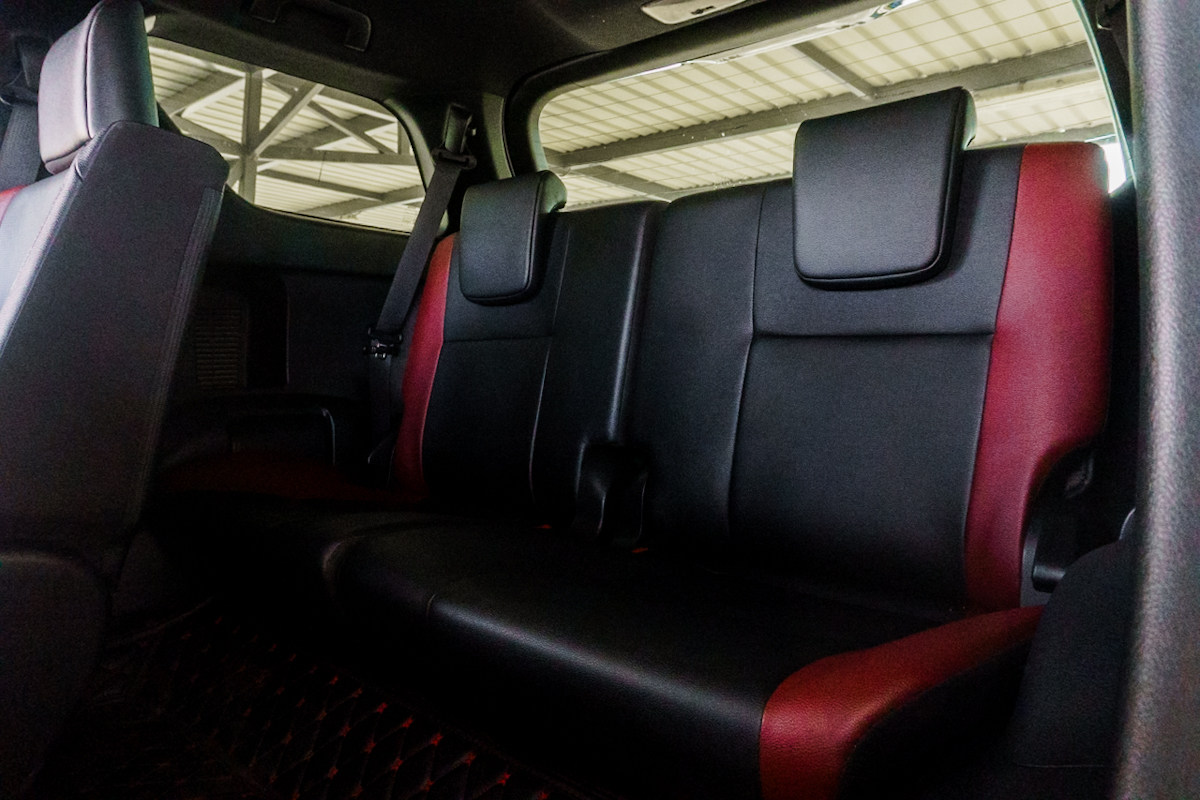 Accessories : -บันไดข้างเป็นสีดำ -คิ้วตกแต่งฝาท้ายเป็นสีดำ -ระบบเตือนเมื่อมีรถอยู่ในมุมอับสายตาด้านข้าง Blind Spot Monitor -ระบบเตือนเมื่อมีรถขณะถอย Rear Cross Traffic Alert -แผ่นกรองอากาศ PM 2.5 -โหมดการขับขี่ 3 รูปแบบ ECO/Normal/Sport -กระจังหน้าสีดำเงา -ชุดตกแต่งกันชนหน้าสีเงิน -ไฟหน้า Bi-Beam LED -ระบบเปิด-ปิดไฟหน้า แบบอัตโนมัติ -ระบบไฟหน้า Follow-me-home -ระบบไฟหน้าปรับระดับสูง-ต่ำ อัตโนมัติ -ไฟตัดหมอกคู่หน้าแบบ LED -ไฟท้าย LED แบบ Light Guiding -ไฟตัดหมอกด้านหลัง -ไฟเบรกดวงที่ 3 แบบ LED -ไฟเลี้ยว ด้านหน้า-ด้านหลัง LED แบบ Sequential -กระจกมองข้างสีเดียวกับตัวรถ ปรับและพับด้วยไฟฟ้า -กระจกมองข้างพร้อมไฟเลี้ยว -ระบบไฟ Welcome Light ที่กระจกมองข้าง -มือเปิดประตู แบบโครเมียม -ฝาท้ายเปิด-ปิดด้วยระบบไฟฟ้า พร้อมระบบป้องกันการหนีบ -ราวหลังคา -สปอยเลอร์หลัง -เสาอากาศแบบครีบฉลาม Shark Fin -เซ็นเซอร์กะระยะด้านหน้า – ด้านหลัง -ภายในห้องโดยสารโทนสีดำ -แดชบอร์ดหน้าบุนุ่มหุ้มด้วยหนัง สีดำ -แดชบอร์ดหน้า-แผงประตู บุนุ่มหุ้มด้วยหนังสีดำ -ช่องแอร์ ตกแต่งด้วยแถบสีเงินและโครเมียม -แผงควบคุมกระจกหน้าต่าง ตกแต่งด้วยสีดำเมทัลลิค -มือเปิดประตูภายใน แบบโครเมียม -ที่บังแดดคู่หน้า พร้อมกระจกแต่งหน้าและไฟส่องสว่าง -มือจับภายในห้องโดยสาร 8 ตำแหน่ง -ไฟส่องสว่างที่ประตู 4 บาน -พวงมาลัยปรับได้ 4 ทิศทาง (ขึ้น-ลง และเข้า-ออก) -พวงมาลัยหุ้มด้วยหนัง -วัสดุตกแต่งภายในห้องโดยสาร ลายไม้ พร้อมแถบสีเงิน -หัวเกียร์ เบรกมือ หุ้มด้วยหนัง -มาตรวัดเรืองแสง Optitron -หน้าจอแสดงข้อมูล MID แบบสี TFT ขนาด 4.2 นิ้ว -ฟังก์ชั่นแสดงองศาการเลี้ยวล้อหน้า Tire Turning Angle -กระจกมองหลัง แบบปรับลดแสงอัตโนมัติ -ปุ่มสตาร์ทเครื่องยนต์ Push Start/Stop Button -ระบบกุญแจ Smart Keyless Entry -ระบบเซ็นทรัลล็อค แบบ Speed Auto Lock -สวิตซ์เลือกโหมดการขับขี่ ECO / Normal / Sport -ระบบปรับอากาศแบบอัตโนมัติ -ระบบกรองอากาศ PM2.5 -สวิตซ์ควบคุมระบบปรับอากาศด้านหลังแบบแยกส่วน -ช่องเก็บของด้านบนแบบรักษาความเย็น Cool Box -ช่องชาร์จไฟ 12V 2 ตำแหน่ง -ช่องชาร์จไฟ AC 220V 1 ตำแหน่ง -หน้าจอชุดเครื่องเสียงระบบสัมผัส Touchscreen ขนาด 8 นิ้ว -สวิตซ์ควบคุมเครื่องเสียงบนพวงมาลัย -ระบบเชื่อมต่อไร้สาย Bluetooth -รองรับระบบ Apple CarPlay / Android Auto -ระบบ T-Connect -ลำโพง 6 ตำแหน่ง -เบาะนั่งหุ้มด้วยหนังสีดำ -เบาะนั่งคู่หน้าแบบสปอร์ต -เบาะนั่งคู่หน้าปรับด้วยไฟฟ้า 6 ทิศทาง -เบาะนั่งแถวที่ 2 แยกปรับและพับ 60 : 40 -เบาะนั่งแถวที่ 2 พนักพิงหลังปรับเอนได้ -เบาะนั่งแถวที่ 2 เบาะรองนั่งเลื่อนหน้า-ถอยหลังได้ -เบาะนั่งแถวที่ 2 พับแบบจังหวะเดียว One Touch -เบาะนั่งแถวที่ 3 แยกปรับและพับ 50 : 50 -ระบบเบรกป้องกันล้อล็อก ABS -ระบบกระจายแรงเบรก EBD -ระบบเสริมแรงเบรก BA -ระบบควบคุมก